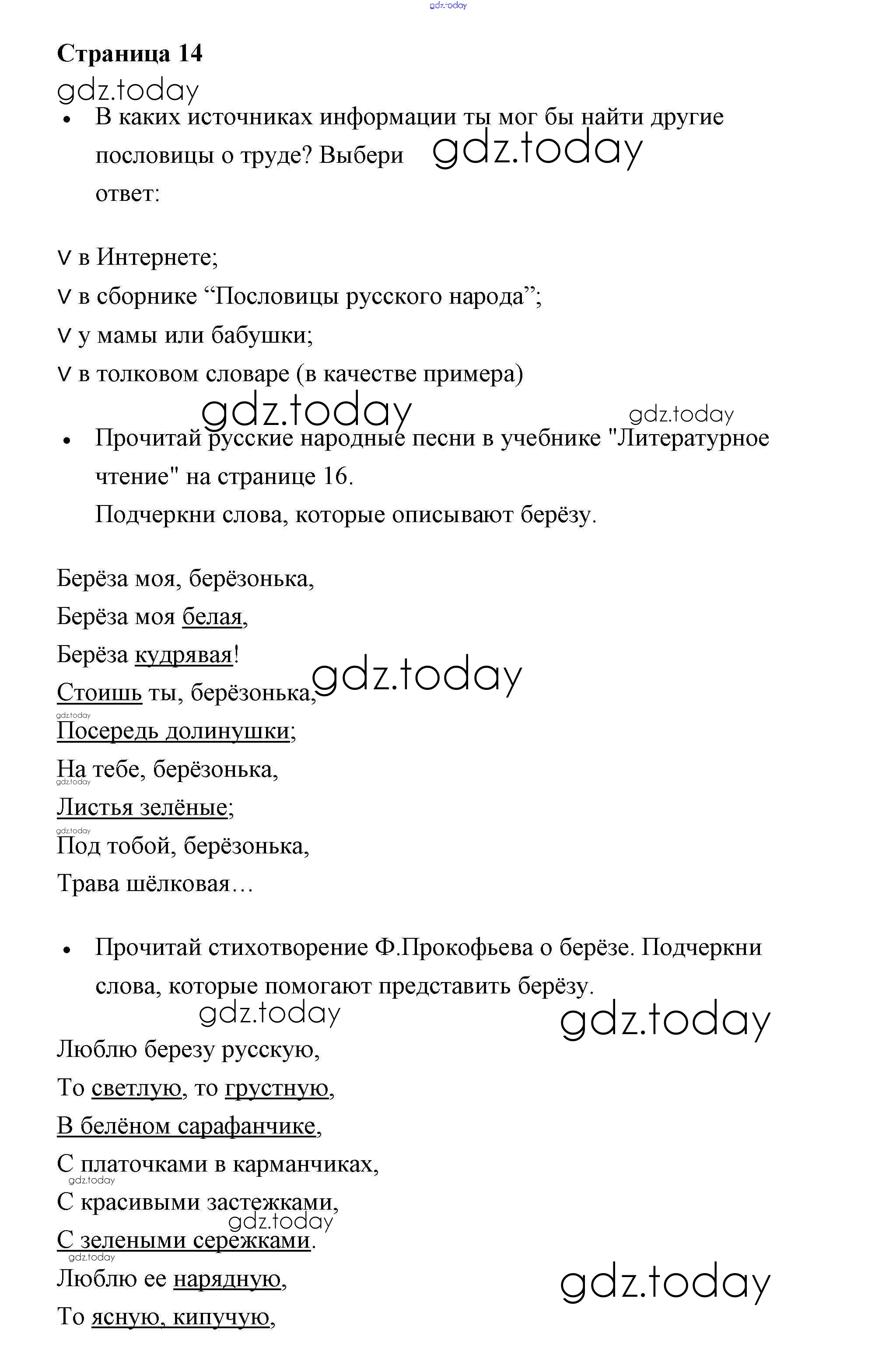 На страницах сайта gdz.today вы найдете учебный и вспомогательный материал, направленный на улучшения знаний школьной программы. ГДЗ - онлайн мир знаний Страницы (решение) 14 Рабочей тетради по Литературному чтению для 2 класса Бойкина, Виноградская Просвещение Школа России 2018
