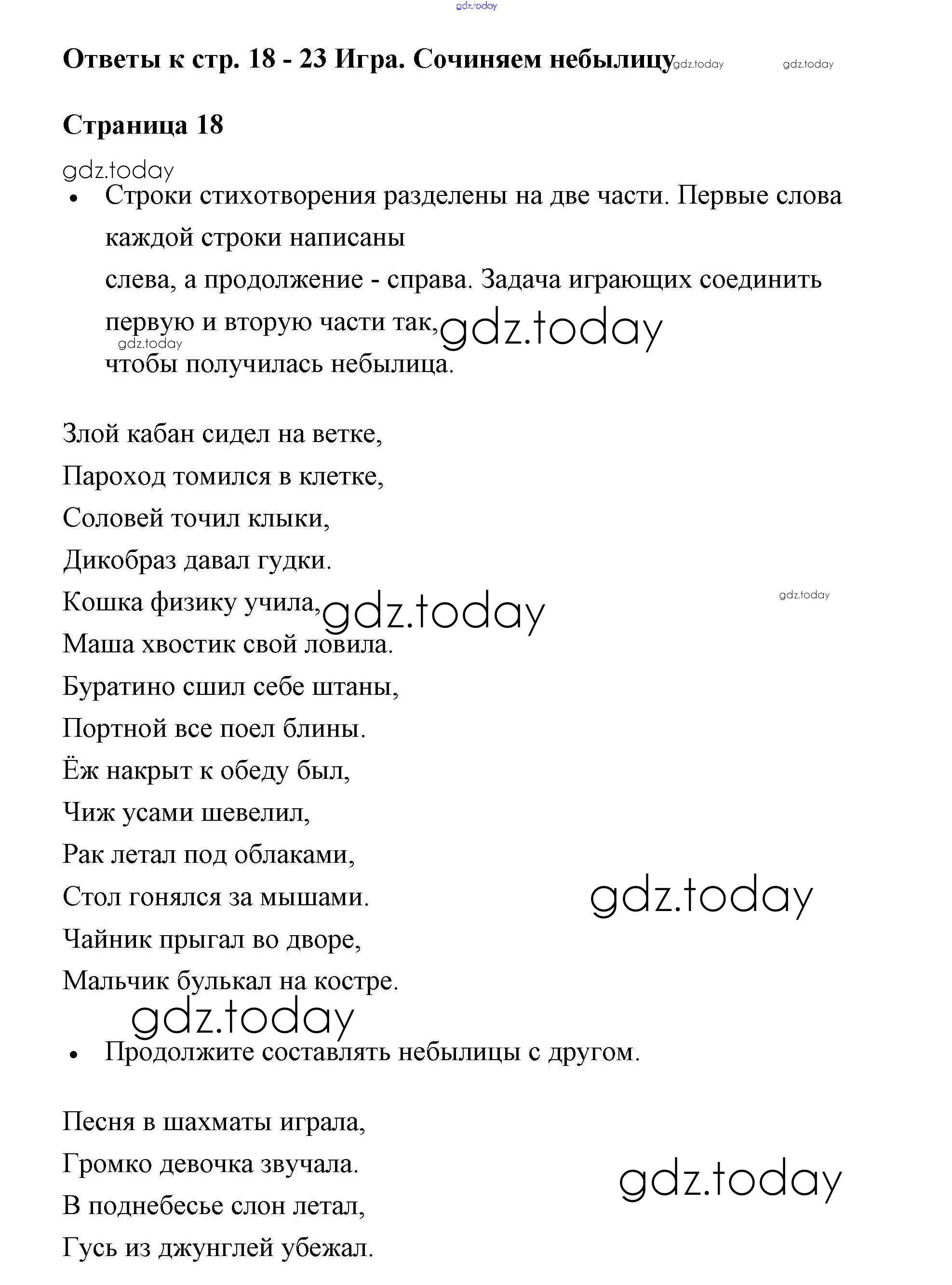 На страницах сайта gdz.today вы найдете учебный и вспомогательный материал, направленный на улучшения знаний школьной программы. ГДЗ - онлайн мир знаний Страницы (решение) 18 Рабочей тетради по Литературному чтению для 2 класса Бойкина, Виноградская Просвещение Школа России 2018