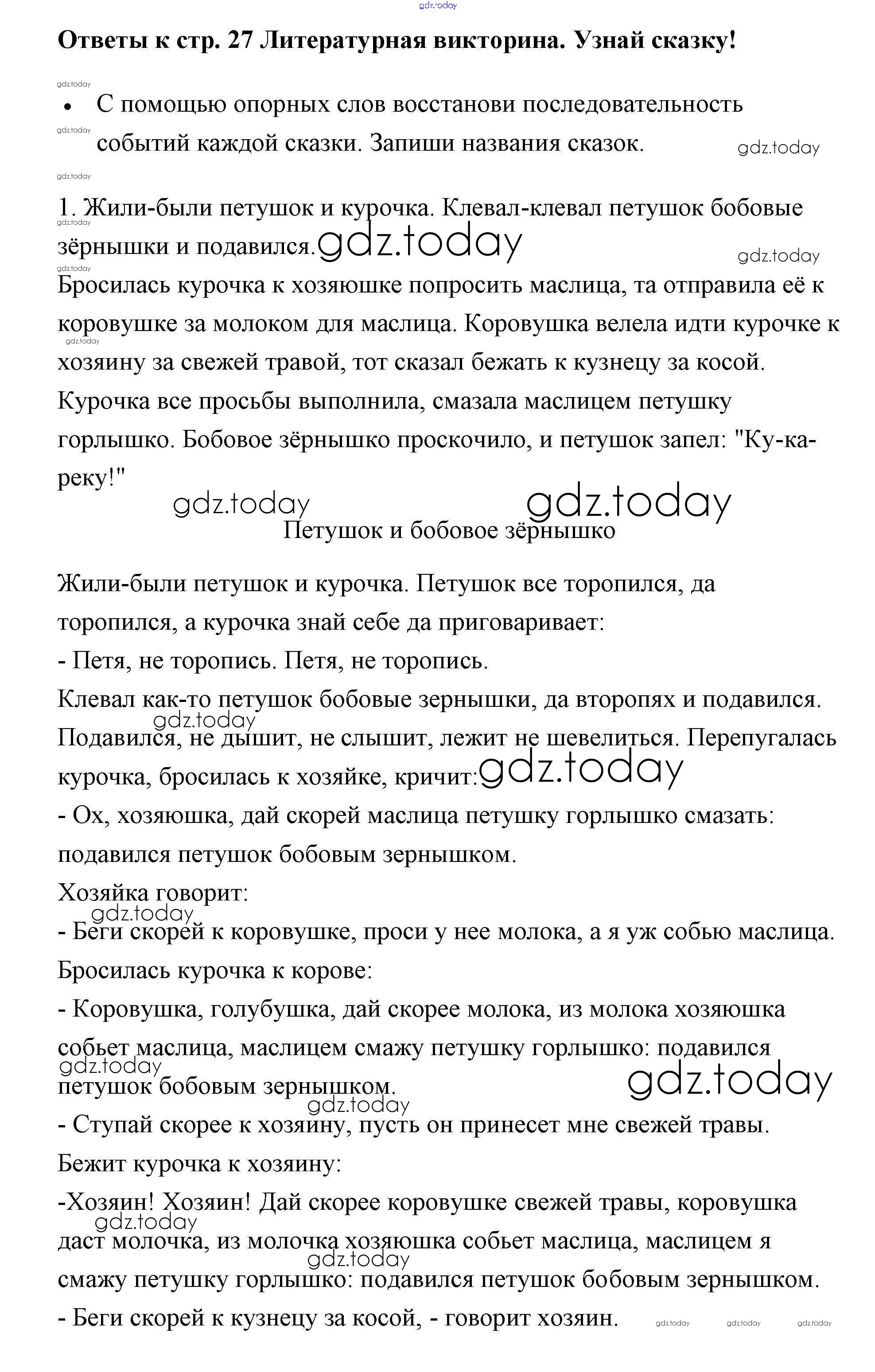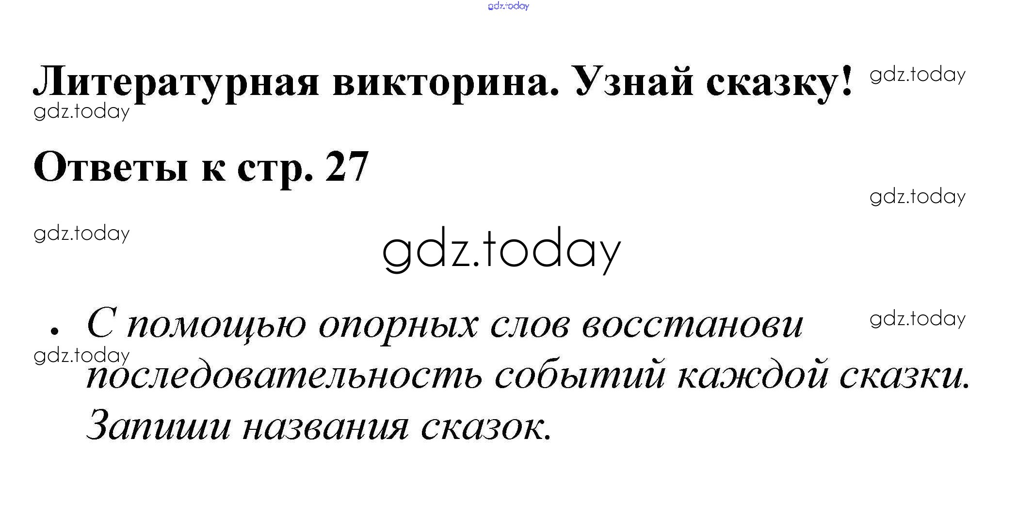 На страницах сайта gdz.today вы найдете учебный и вспомогательный материал, направленный на улучшения знаний школьной программы. ГДЗ - онлайн мир знаний Страницы (решение) 27 Рабочей тетради по Литературному чтению для 2 класса Бойкина, Виноградская Просвещение Школа России 2018