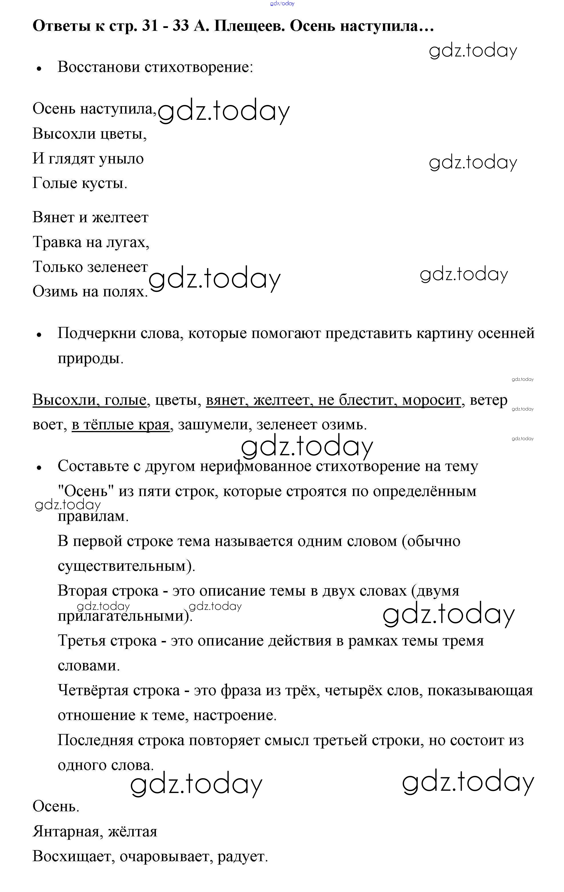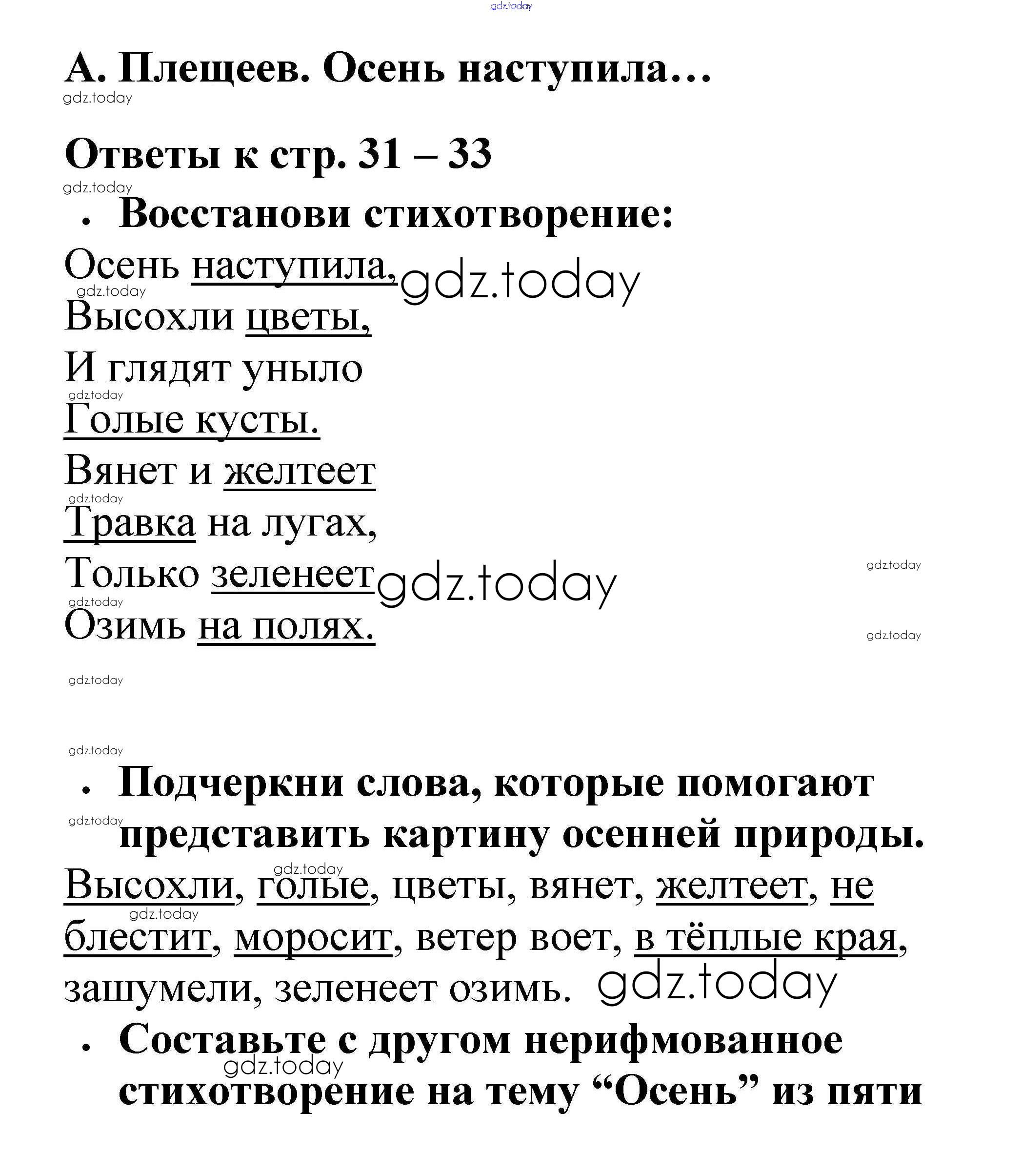 На страницах сайта gdz.today вы найдете учебный и вспомогательный материал, направленный на улучшения знаний школьной программы. ГДЗ - онлайн мир знаний Страницы (решение) 31 Рабочей тетради по Литературному чтению для 2 класса Бойкина, Виноградская Просвещение Школа России 2018