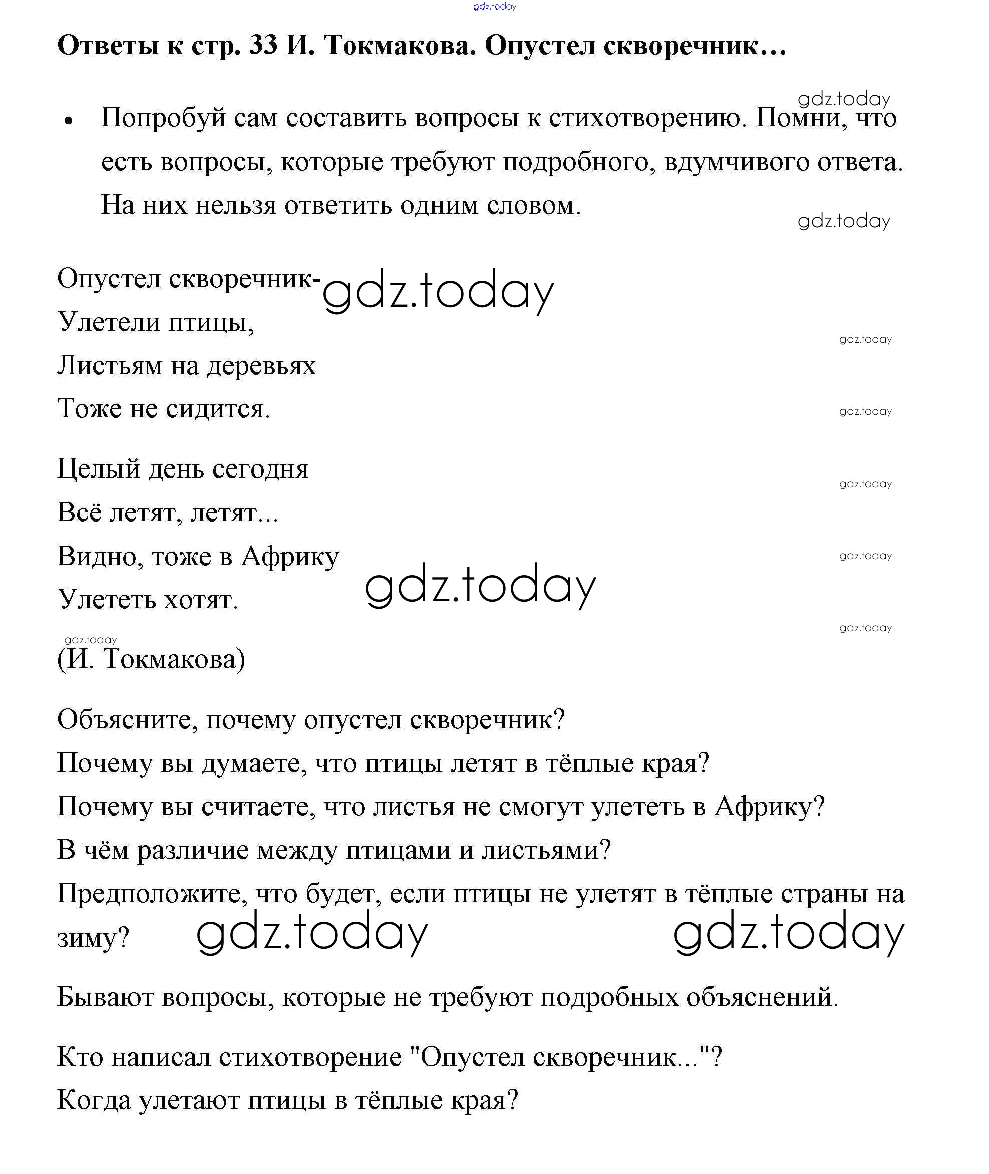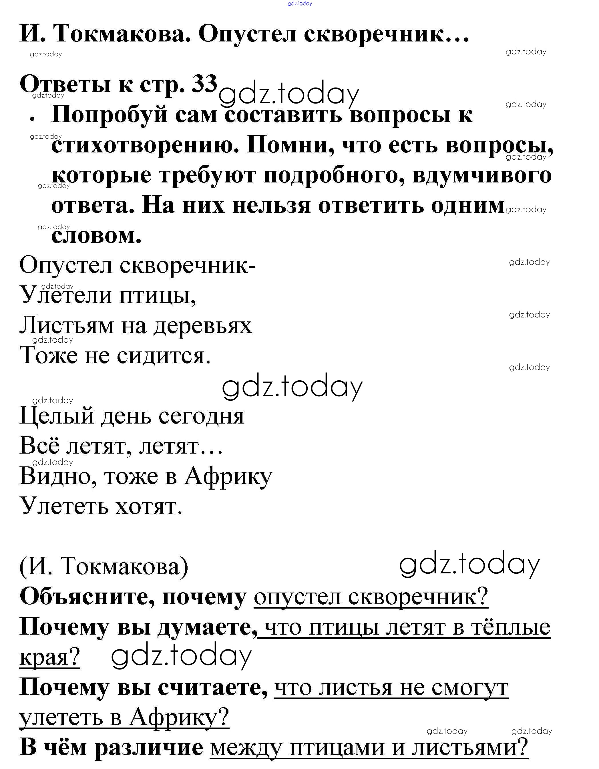 На страницах сайта gdz.today вы найдете учебный и вспомогательный материал, направленный на улучшения знаний школьной программы. ГДЗ - онлайн мир знаний Страницы (решение) 33 Рабочей тетради по Литературному чтению для 2 класса Бойкина, Виноградская Просвещение Школа России 2018