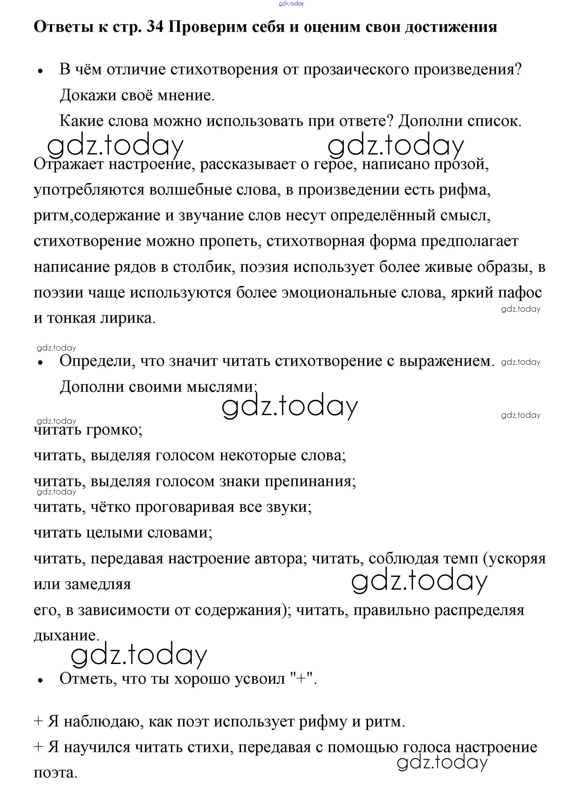Ответы к Страницы (решение) 34 Рабочей тетради по Литературному чтению для 2 класса Бойкина, Виноградская Просвещение Школа России 2018