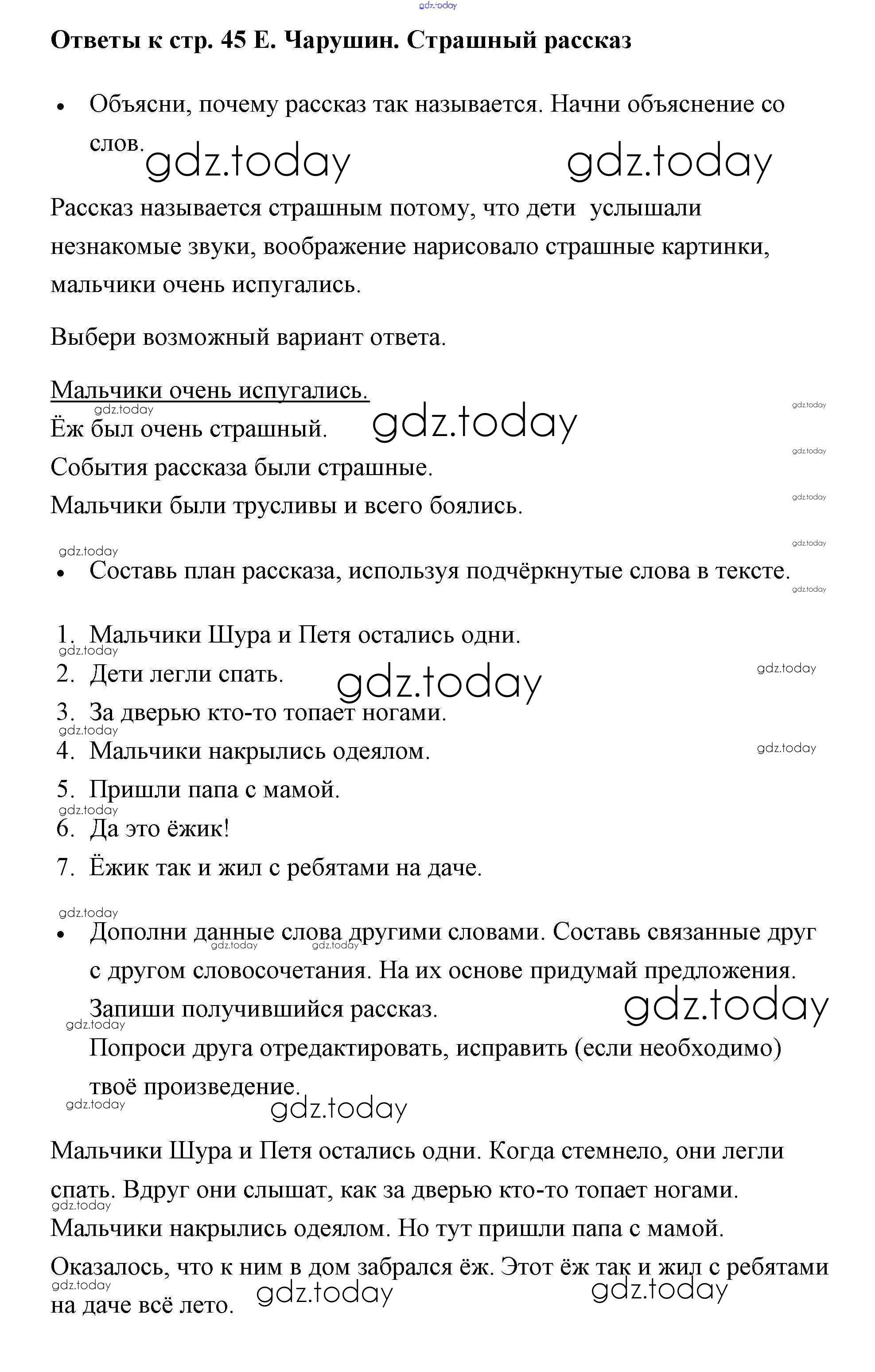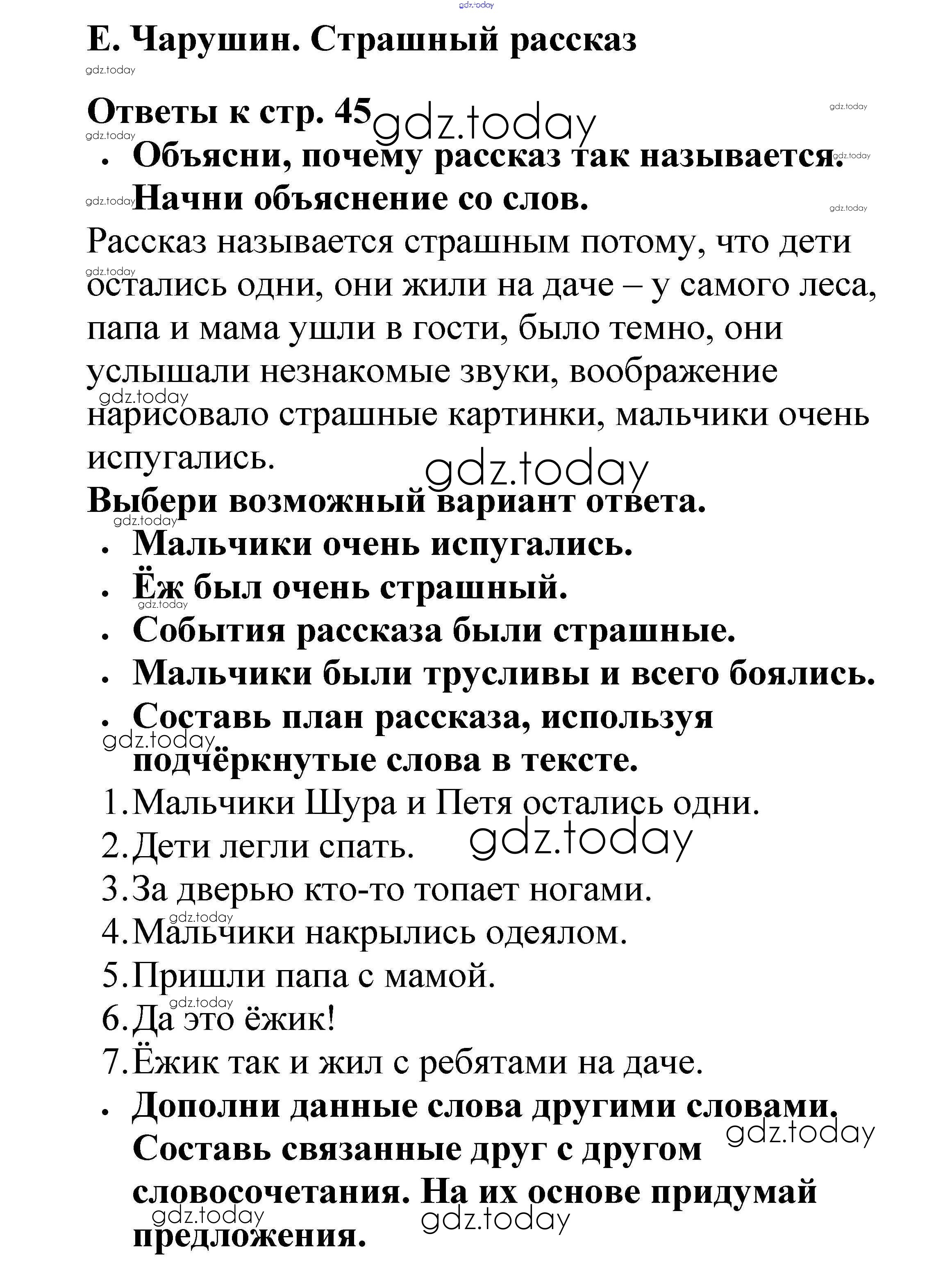 На страницах сайта gdz.today вы найдете учебный и вспомогательный материал, направленный на улучшения знаний школьной программы. ГДЗ - онлайн мир знаний Страницы (решение) 45 Рабочей тетради по Литературному чтению для 2 класса Бойкина, Виноградская Просвещение Школа России 2018