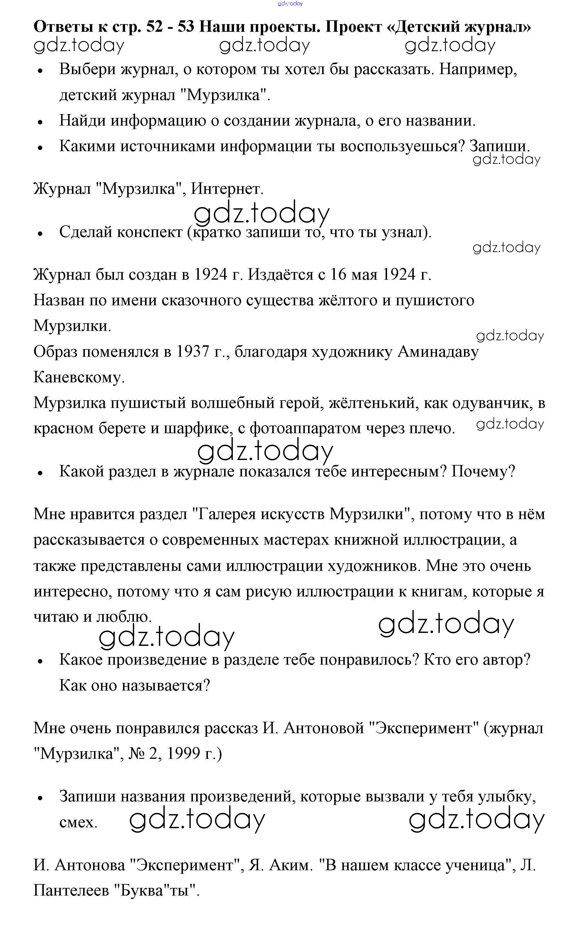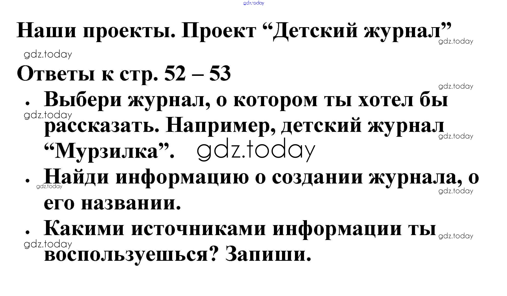 На страницах сайта gdz.today вы найдете учебный и вспомогательный материал, направленный на улучшения знаний школьной программы. ГДЗ - онлайн мир знаний Страницы (решение) 52 Рабочей тетради по Литературному чтению для 2 класса Бойкина, Виноградская Просвещение Школа России 2018
