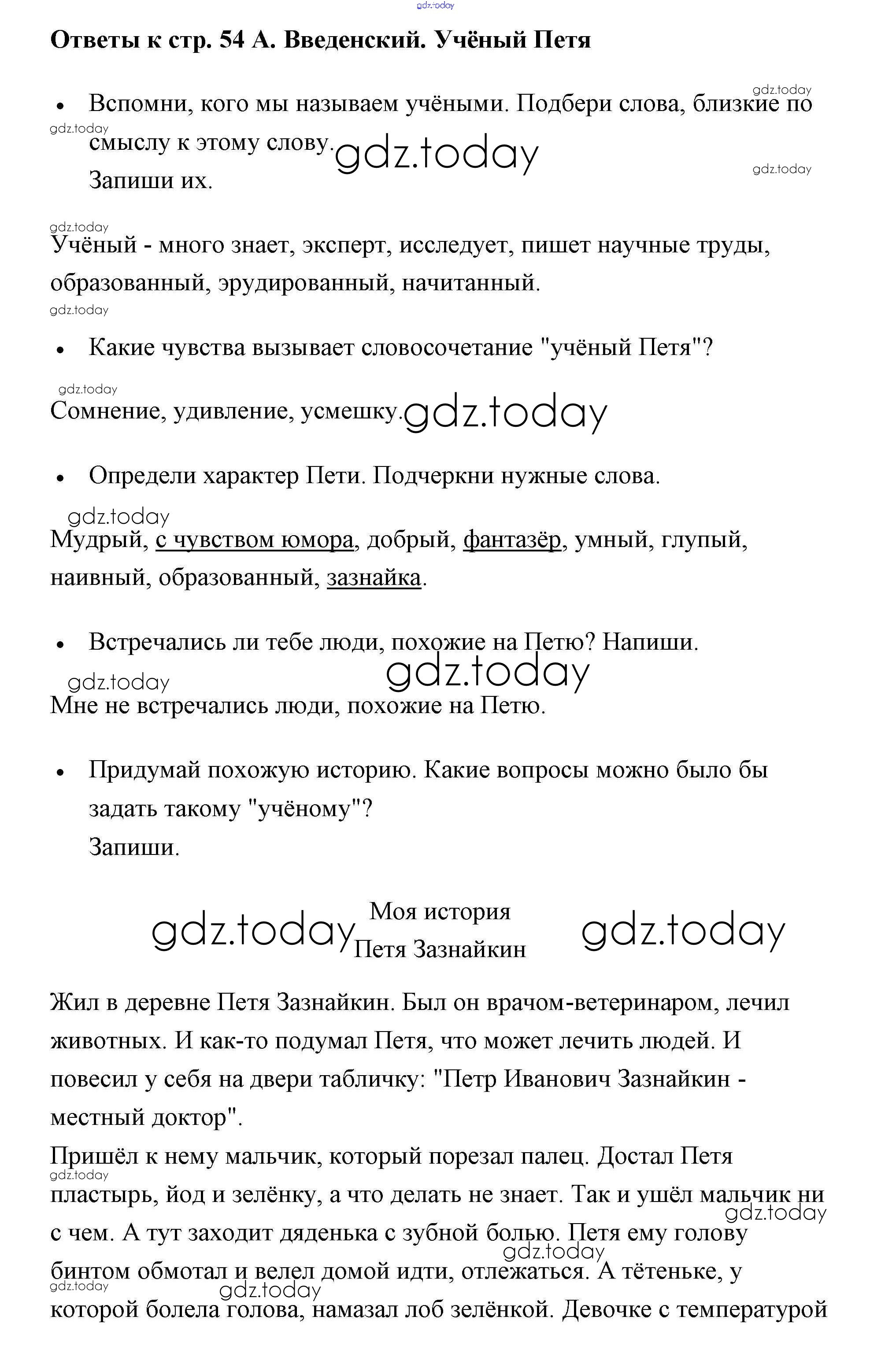 Ответы к Страницы (решение) 54 Рабочей тетради по Литературному чтению для 2 класса Бойкина, Виноградская Просвещение Школа России 2018