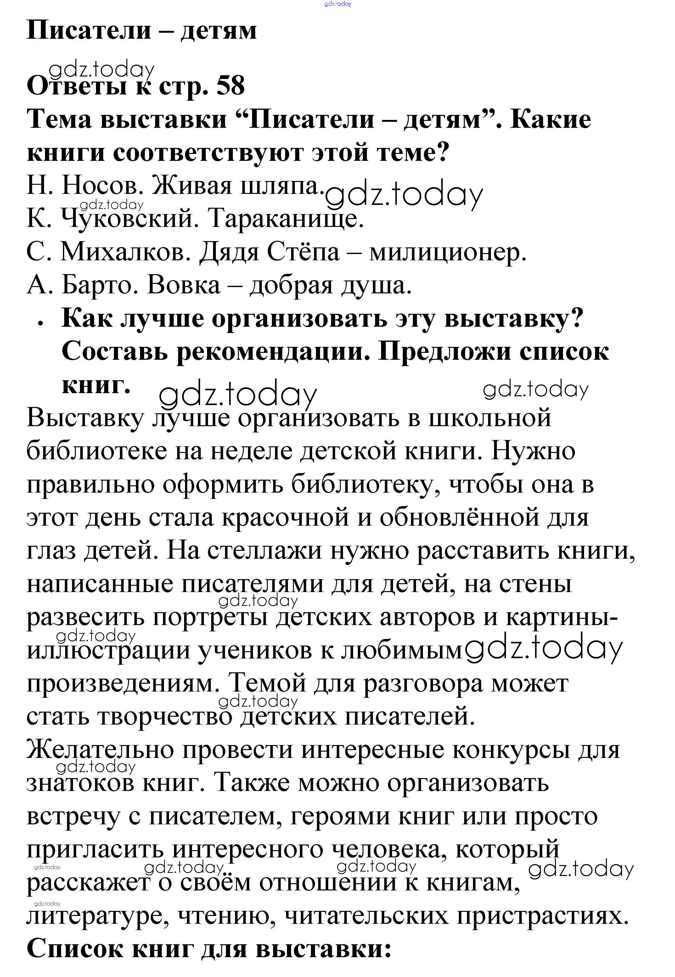 Ответы к Страницы (решение) 58 Рабочей тетради по Литературному чтению для 2 класса Бойкина, Виноградская Просвещение Школа России 2018