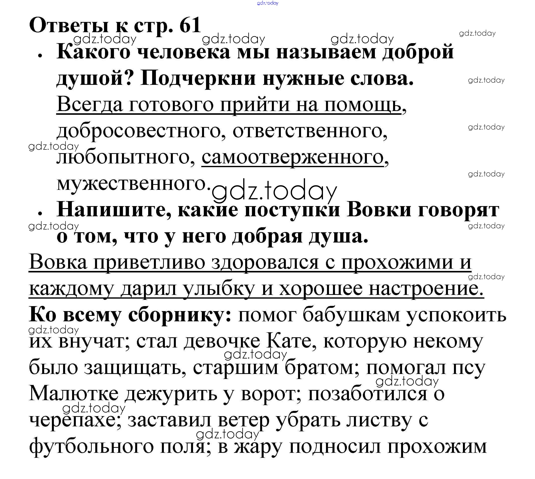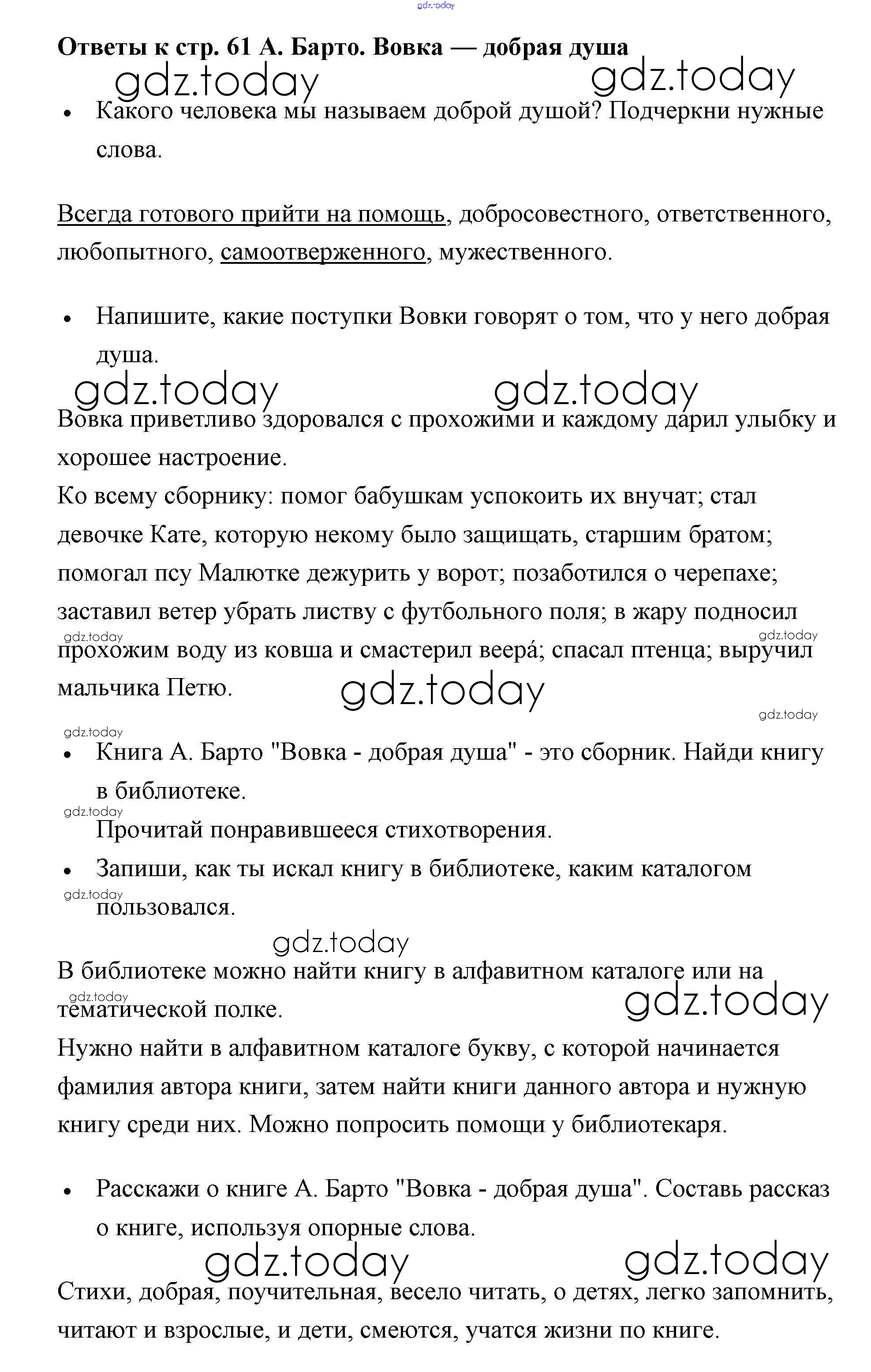 На страницах сайта gdz.today вы найдете учебный и вспомогательный материал, направленный на улучшения знаний школьной программы. ГДЗ - онлайн мир знаний Страницы (решение) 61 Рабочей тетради по Литературному чтению для 2 класса Бойкина, Виноградская Просвещение Школа России 2018