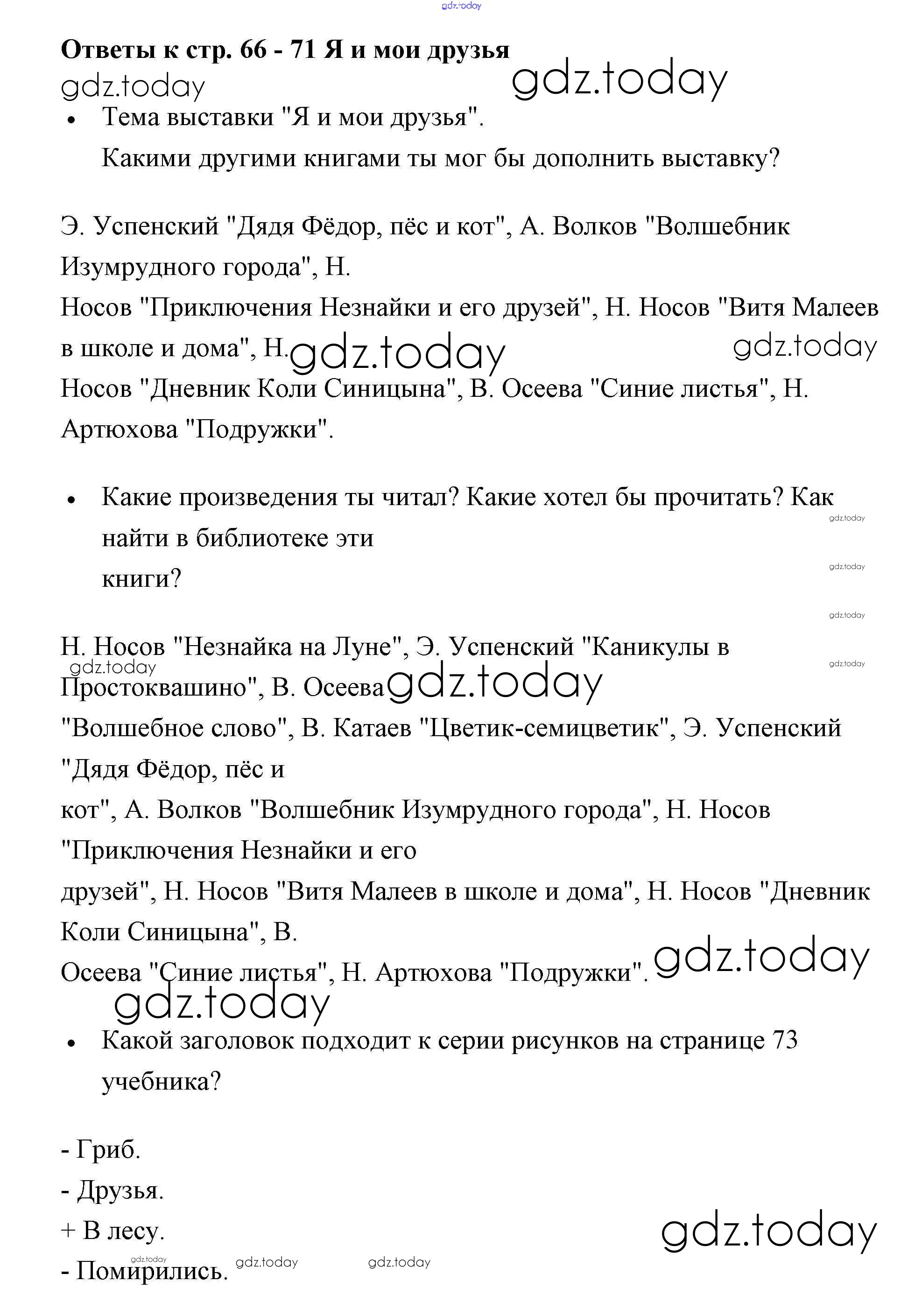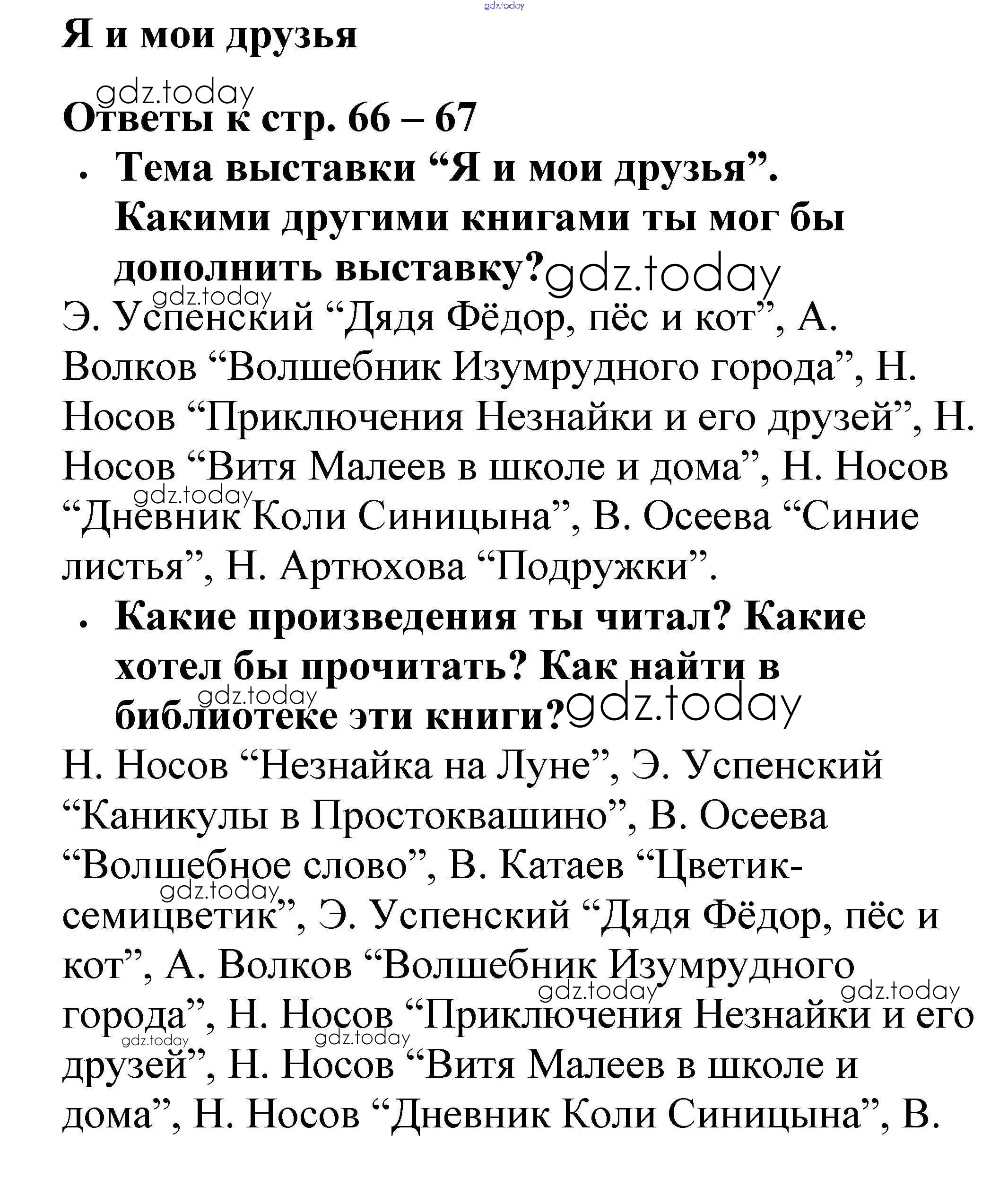 На страницах сайта gdz.today вы найдете учебный и вспомогательный материал, направленный на улучшения знаний школьной программы. ГДЗ - онлайн мир знаний Страницы (решение) 66 Рабочей тетради по Литературному чтению для 2 класса Бойкина, Виноградская Просвещение Школа России 2018