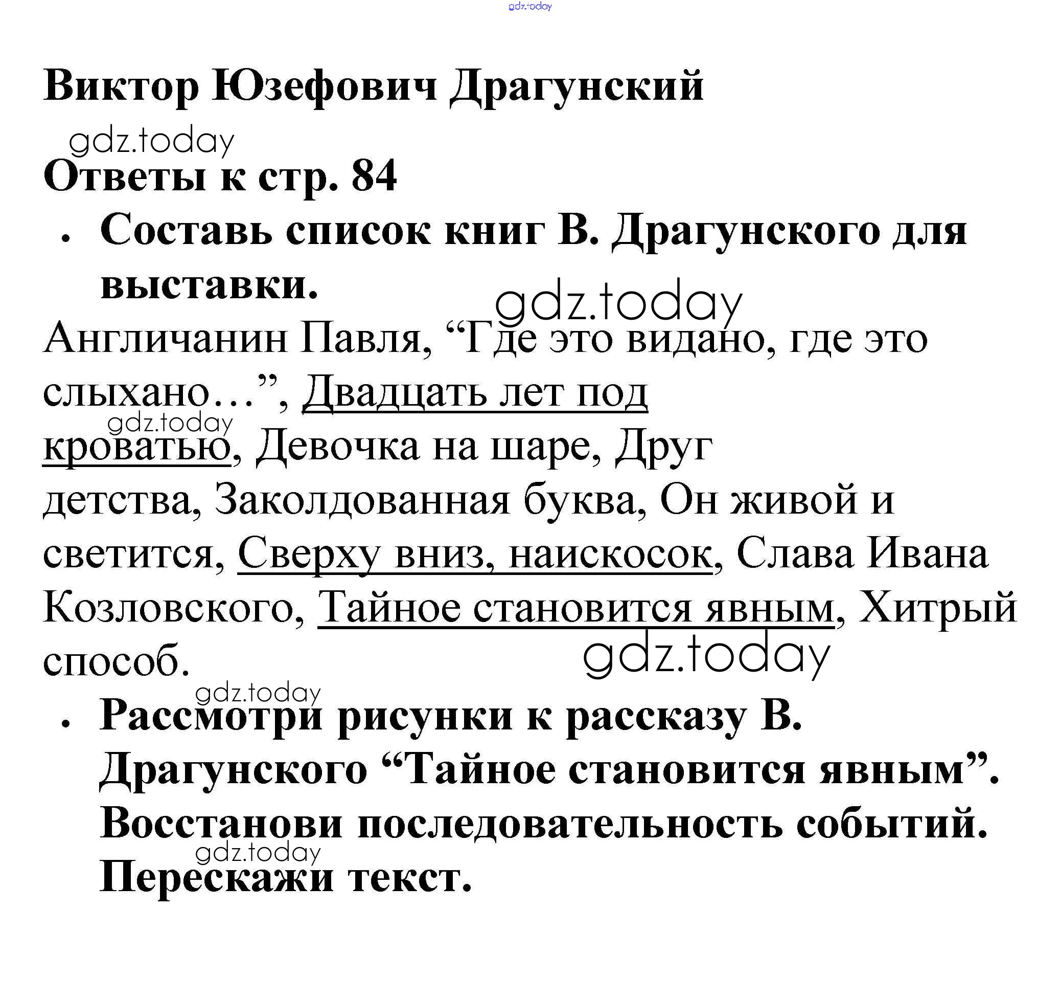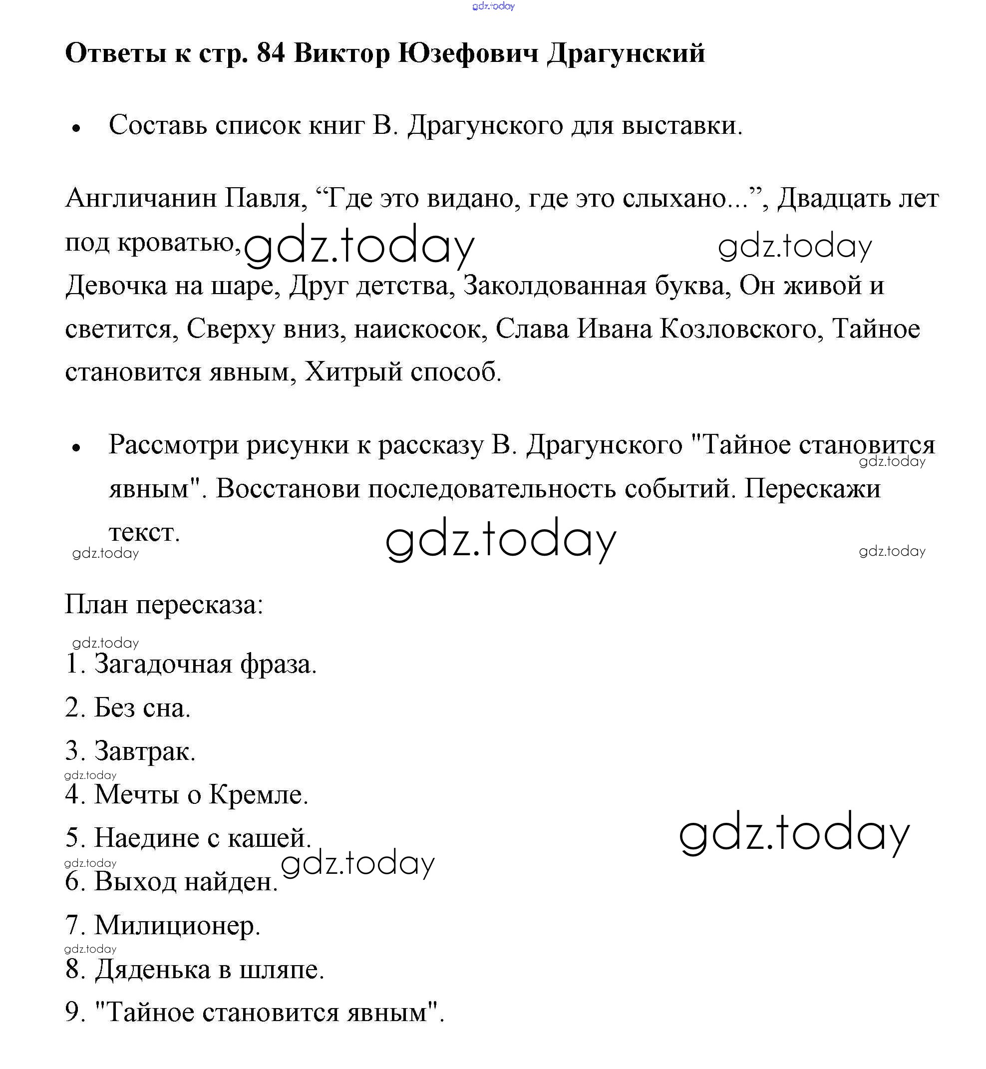 На страницах сайта gdz.today вы найдете учебный и вспомогательный материал, направленный на улучшения знаний школьной программы. ГДЗ - онлайн мир знаний Страницы (решение) 84 Рабочей тетради по Литературному чтению для 2 класса Бойкина, Виноградская Просвещение Школа России 2018