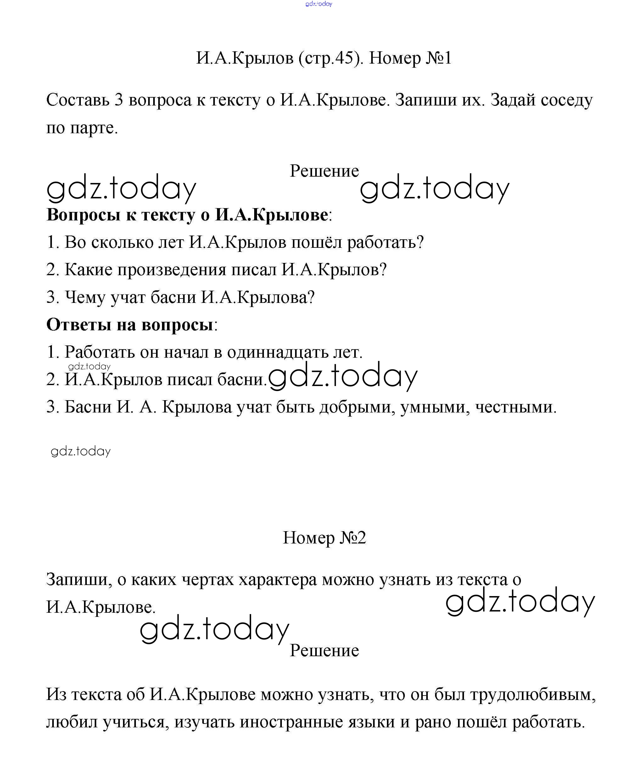 На страницах сайта gdz.today вы найдете учебный и вспомогательный материал, направленный на улучшения знаний школьной программы. ГДЗ - онлайн мир знаний Решение к части 1 (Страницы) 45 Рабочей тетради по Литературному чтению для 2 класса Тихомирова Экзамен УМК 2021