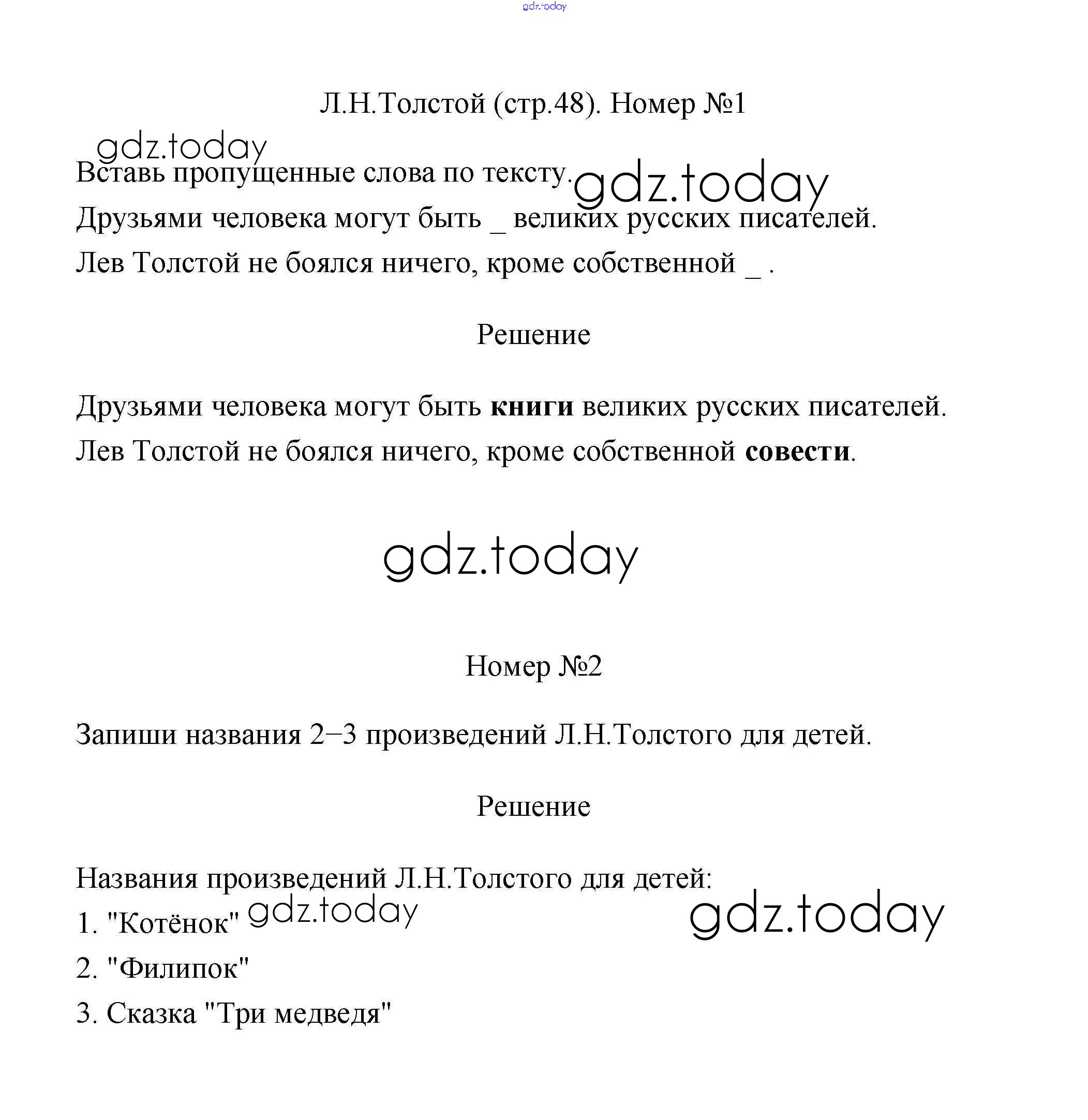 Ответы к Решение к части 1 (Страницы) 48 Рабочей тетради по Литературному чтению для 2 класса Тихомирова Экзамен УМК 2021
