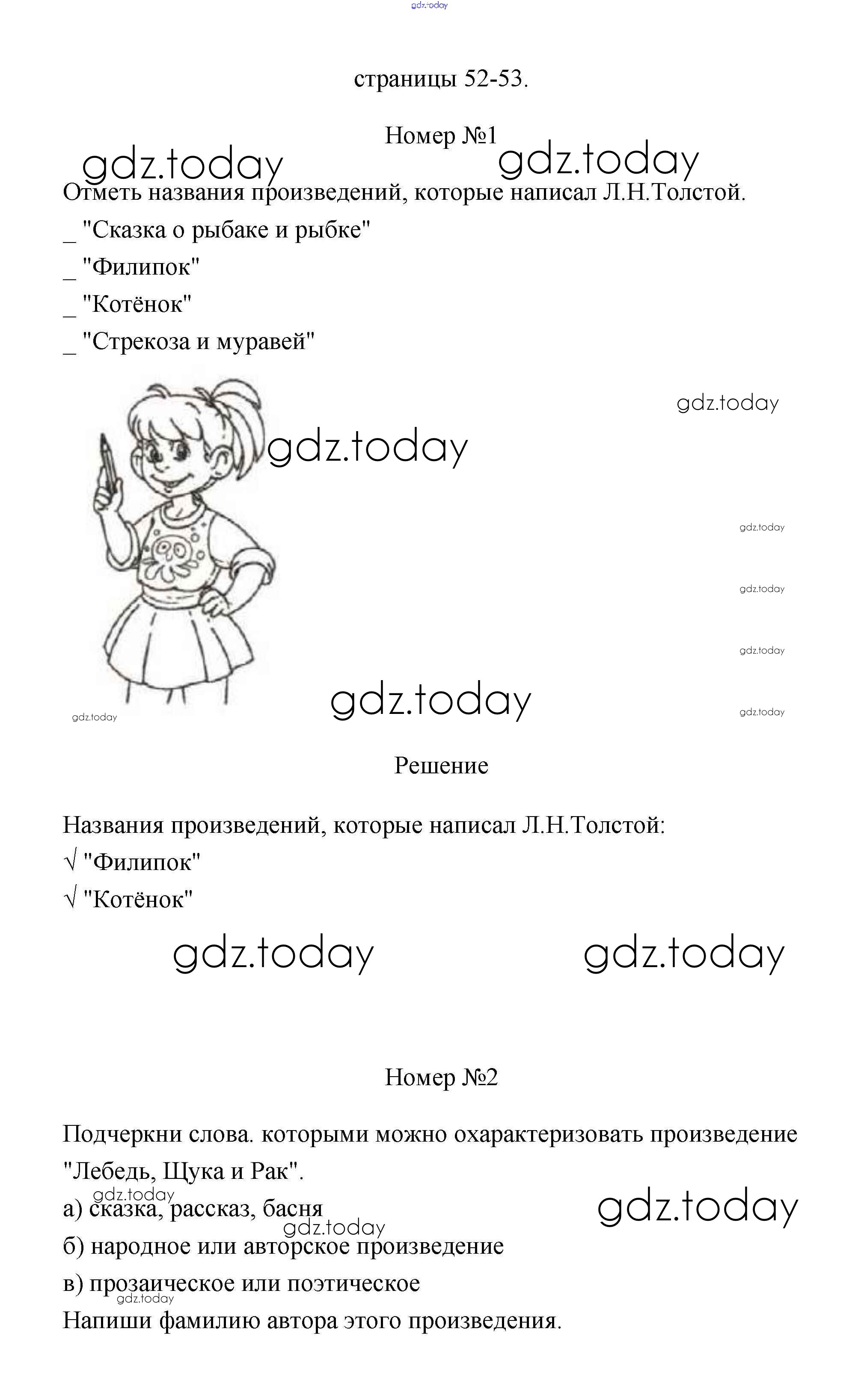 На страницах сайта gdz.today вы найдете учебный и вспомогательный материал, направленный на улучшения знаний школьной программы. ГДЗ - онлайн мир знаний Решение к части 1 (Страницы) 52 Рабочей тетради по Литературному чтению для 2 класса Тихомирова Экзамен УМК 2021