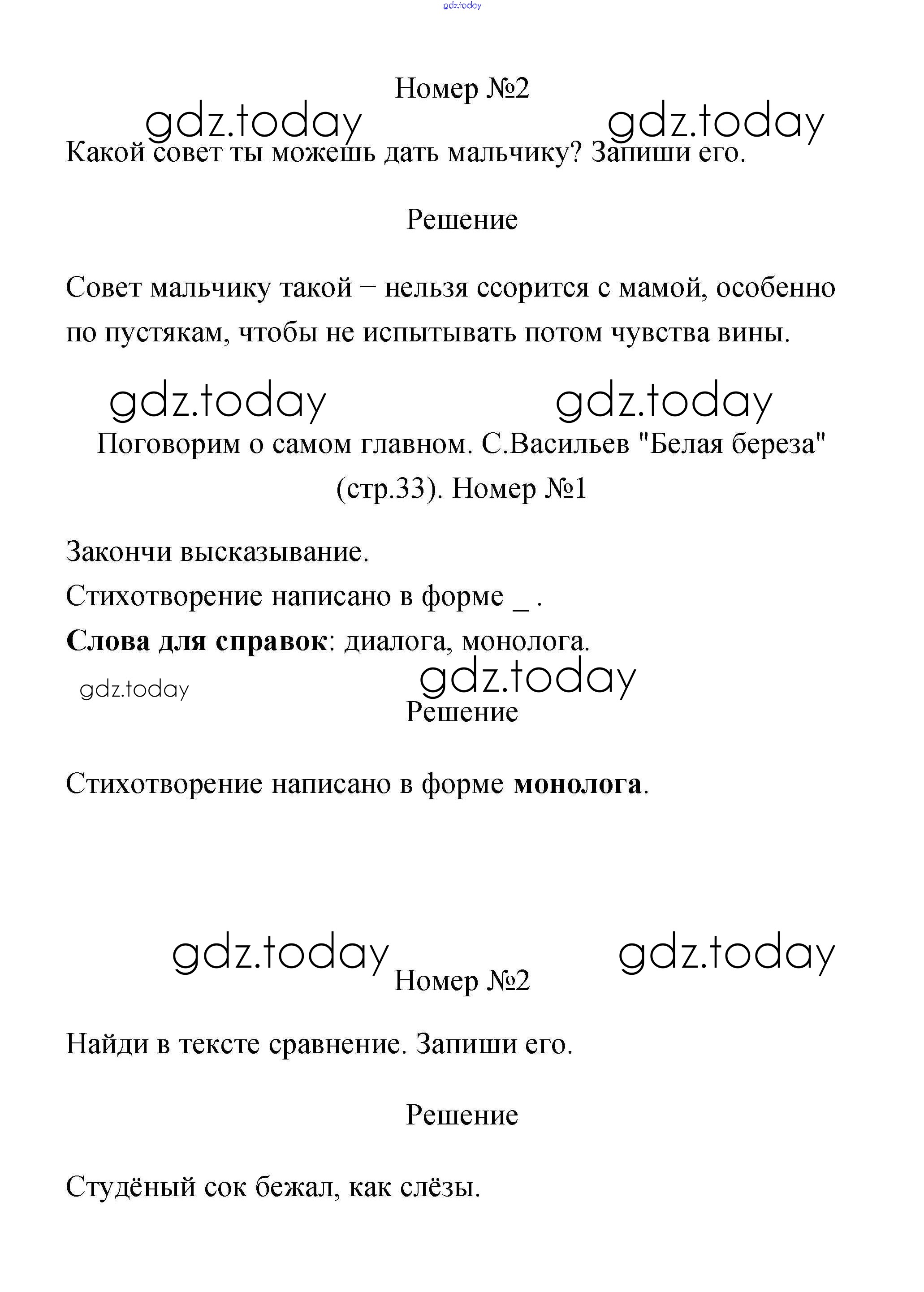 Ответы к Решение к части 2 (Страницы) 33 Рабочей тетради по Литературному чтению для 2 класса Тихомирова Экзамен УМК 2021