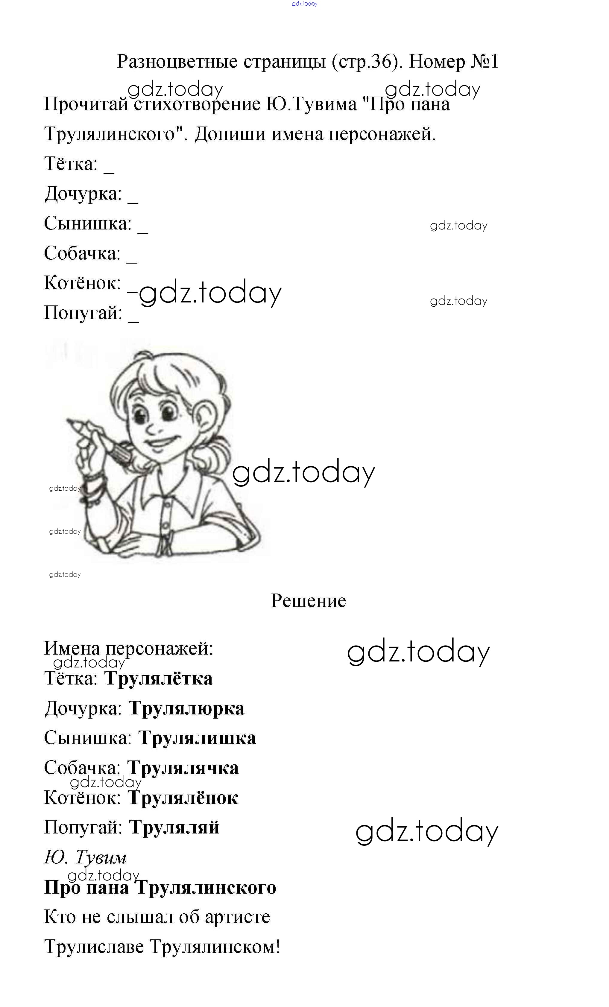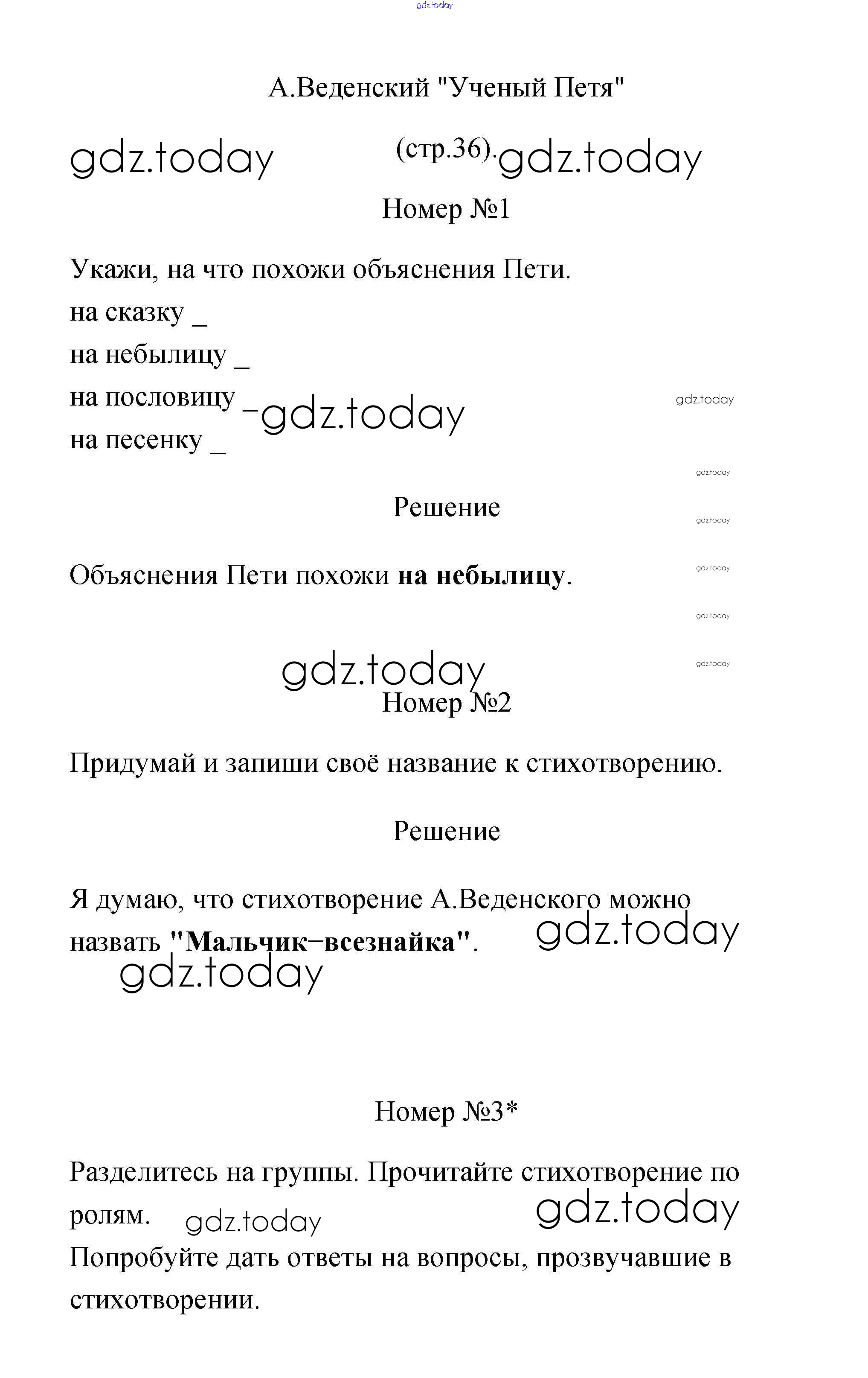 На страницах сайта gdz.today вы найдете учебный и вспомогательный материал, направленный на улучшения знаний школьной программы. ГДЗ - онлайн мир знаний Решение к части 2 (Страницы) 36 Рабочей тетради по Литературному чтению для 2 класса Тихомирова Экзамен УМК 2021
