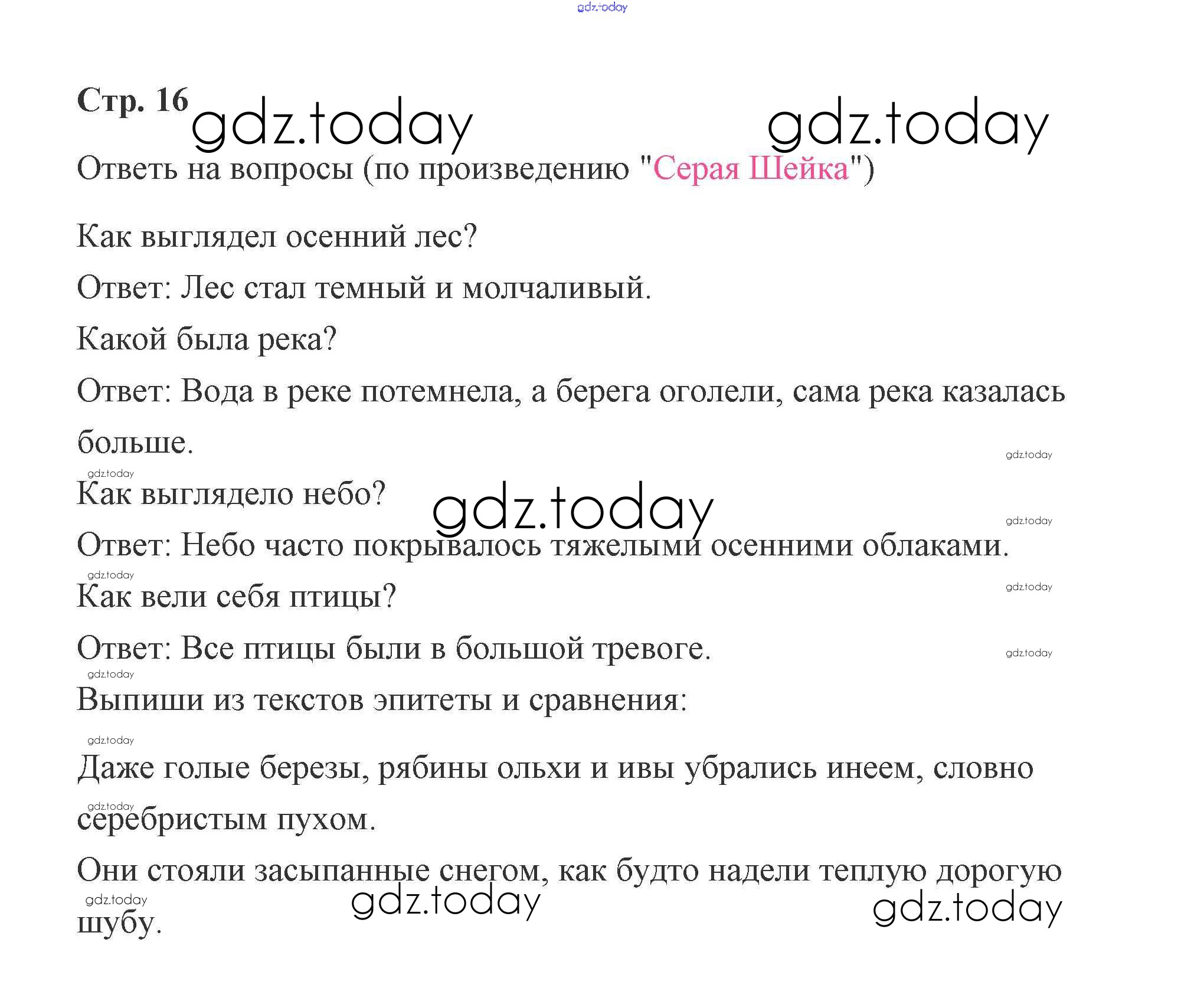 На страницах сайта gdz.today вы найдете учебный и вспомогательный материал, направленный на улучшения знаний школьной программы. ГДЗ - онлайн мир знаний Страницы (решение) 16 Творческой тетради по Литературному чтению для 2 класса Коти Просвещение Перспектива 2017