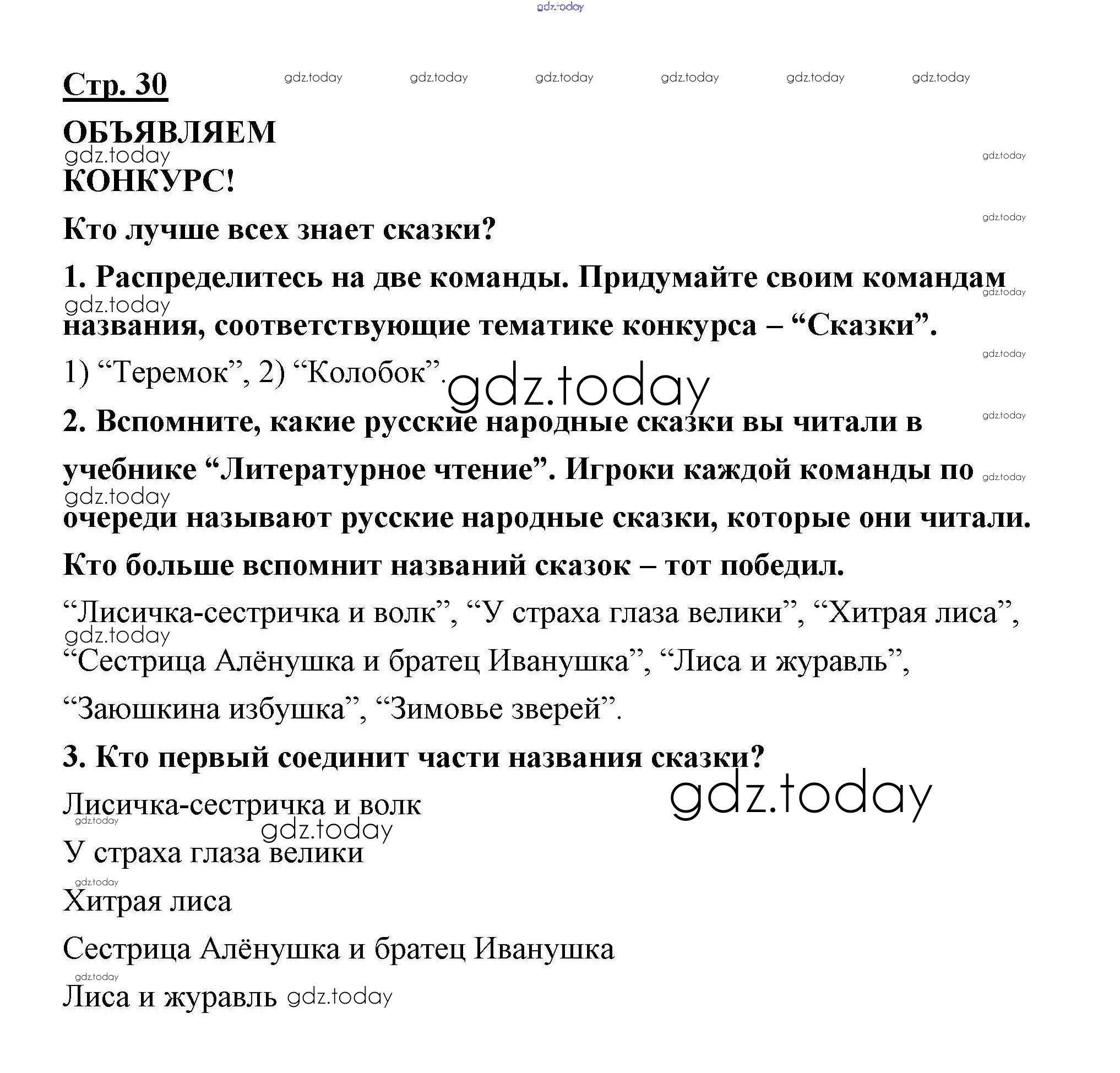 На страницах сайта gdz.today вы найдете учебный и вспомогательный материал, направленный на улучшения знаний школьной программы. ГДЗ - онлайн мир знаний Страницы (решение) 30 Творческой тетради по Литературному чтению для 2 класса Коти Просвещение Перспектива 2017