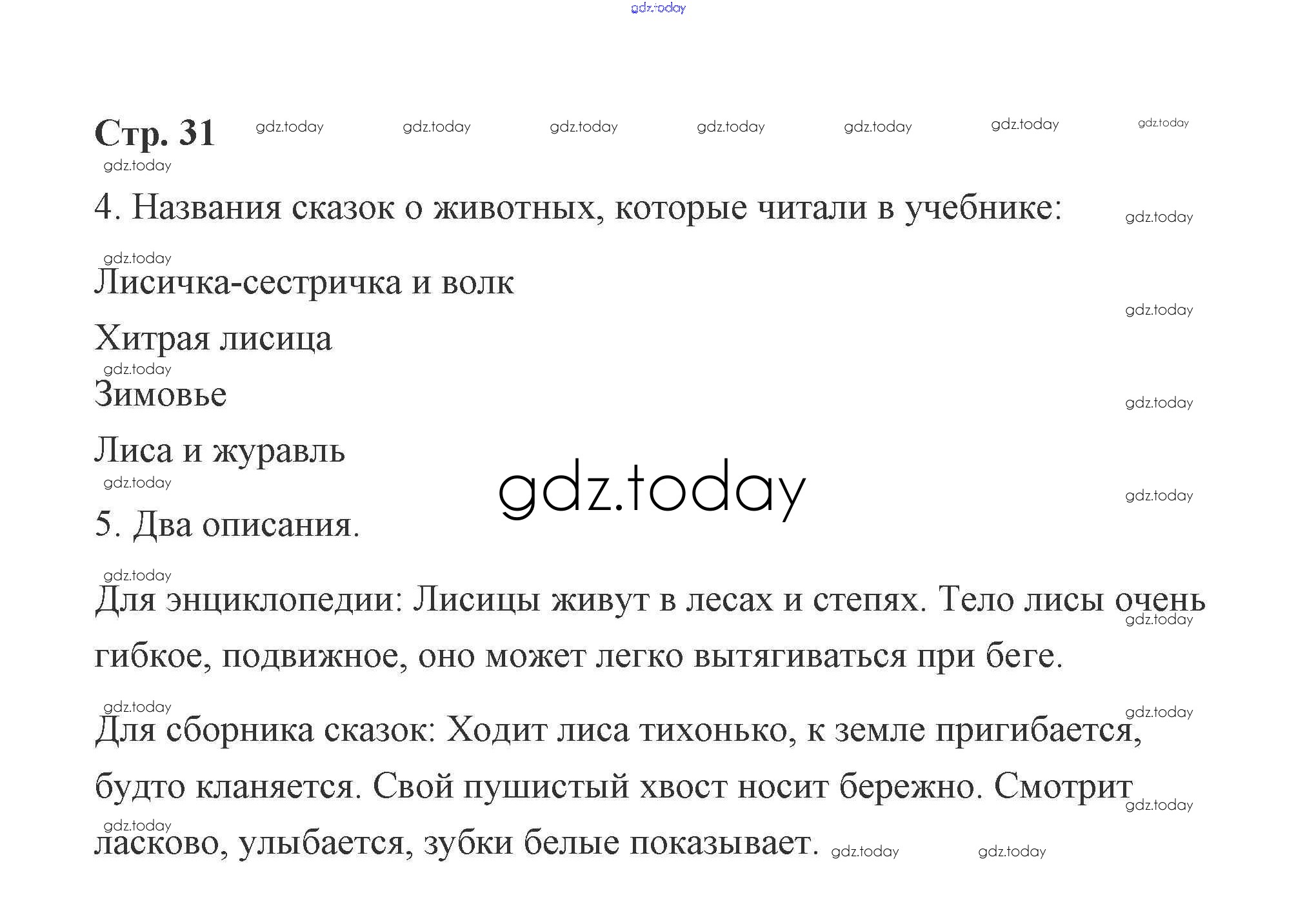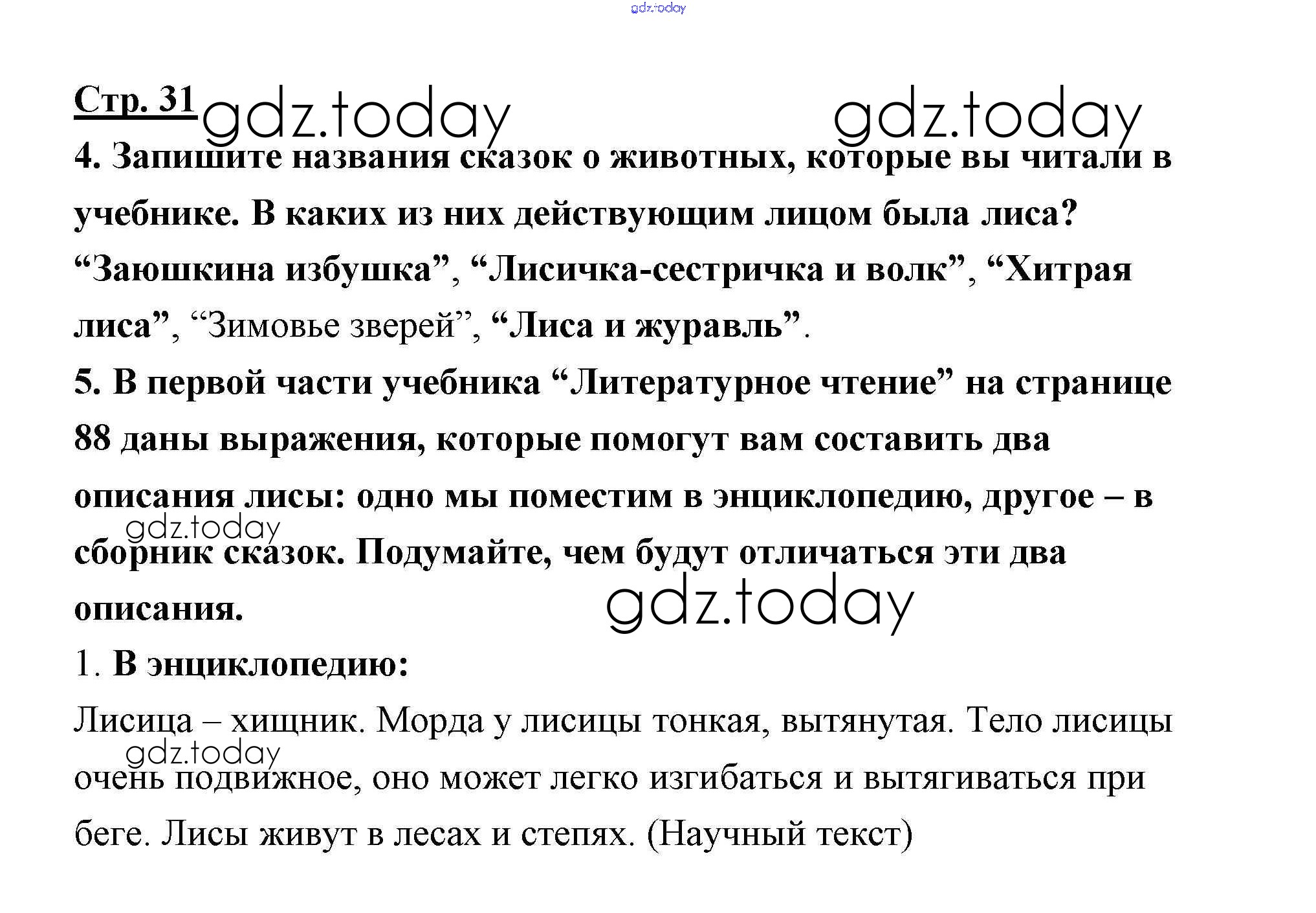 На страницах сайта gdz.today вы найдете учебный и вспомогательный материал, направленный на улучшения знаний школьной программы. ГДЗ - онлайн мир знаний Страницы (решение) 31 Творческой тетради по Литературному чтению для 2 класса Коти Просвещение Перспектива 2017