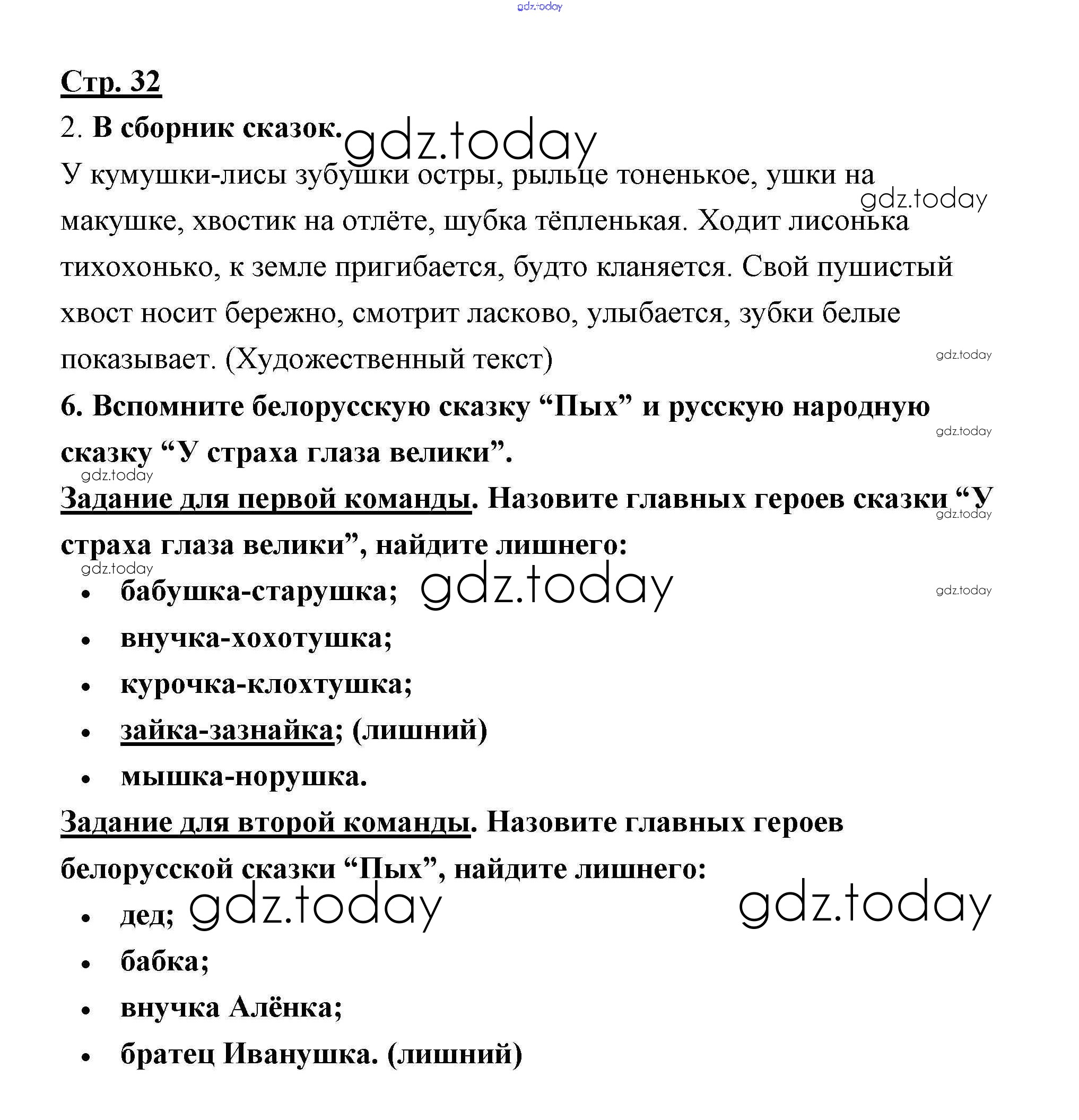 На страницах сайта gdz.today вы найдете учебный и вспомогательный материал, направленный на улучшения знаний школьной программы. ГДЗ - онлайн мир знаний Страницы (решение) 32 Творческой тетради по Литературному чтению для 2 класса Коти Просвещение Перспектива 2017