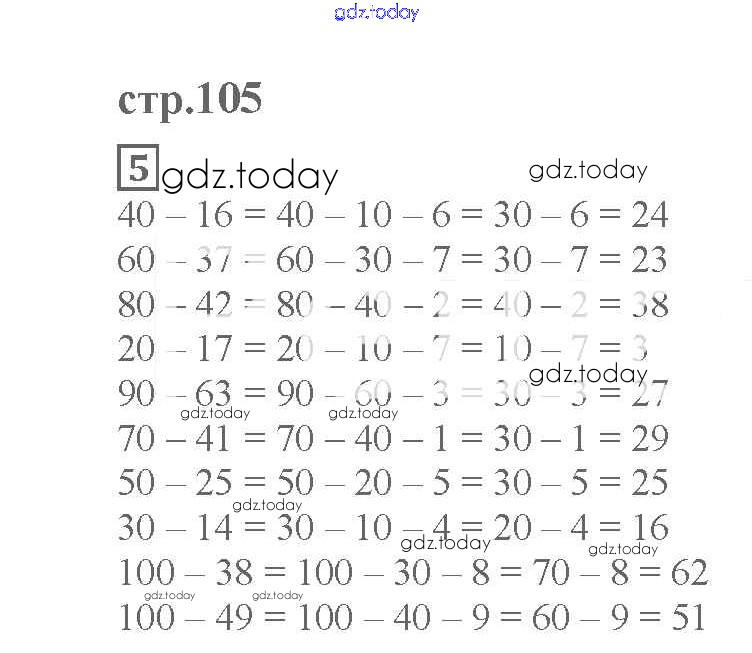 На страницах сайта gdz.today вы найдете учебный и вспомогательный материал, направленный на улучшения знаний школьной программы. ГДЗ - онлайн мир знаний Страница 105 Вычисления в пределах 100 5 Учебнику по Математике для 2 класса Башмаков, Нефедова Аст/Астрель Планета знаний 2015