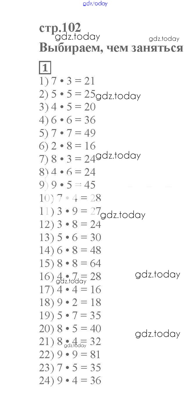 На страницах сайта gdz.today вы найдете учебный и вспомогательный материал, направленный на улучшения знаний школьной программы. ГДЗ - онлайн мир знаний Страница 102 Учимся умножать и делить 1 Учебнику по Математике для 2 класса Башмаков, Нефедова Аст/Астрель Планета знаний 2015