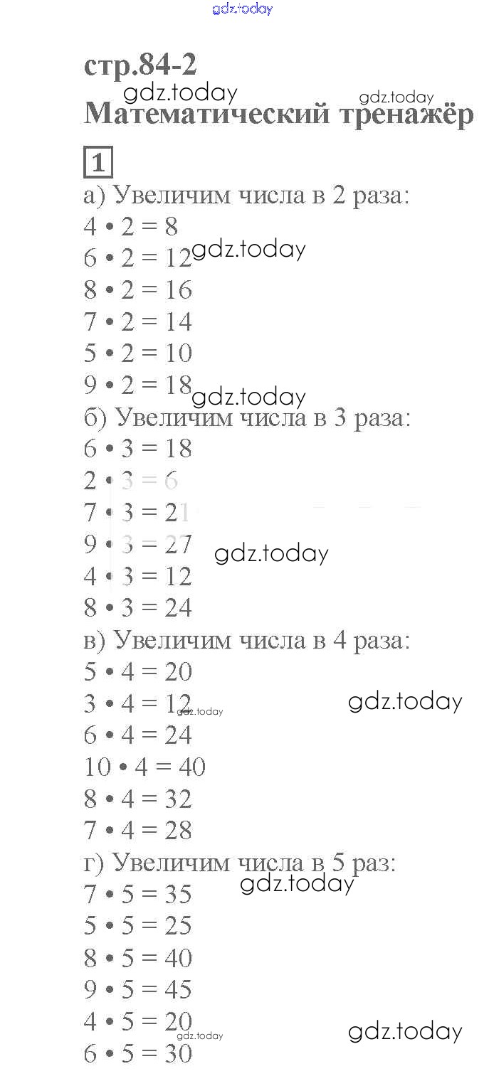 На страницах сайта gdz.today вы найдете учебный и вспомогательный материал, направленный на улучшения знаний школьной программы. ГДЗ - онлайн мир знаний Страница 84 Учимся умножать и делить 1 Учебнику по Математике для 2 класса Башмаков, Нефедова Аст/Астрель Планета знаний 2015