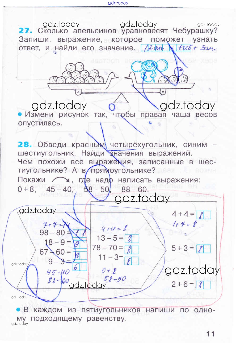 На страницах сайта gdz.today вы найдете учебный и вспомогательный материал, направленный на улучшения знаний школьной программы. ГДЗ - онлайн мир знаний Решение к тетради 1. Страницы 11 Рабочей тетради по Математике для 2 класса Бененсон, Итина Фёдоров 2015