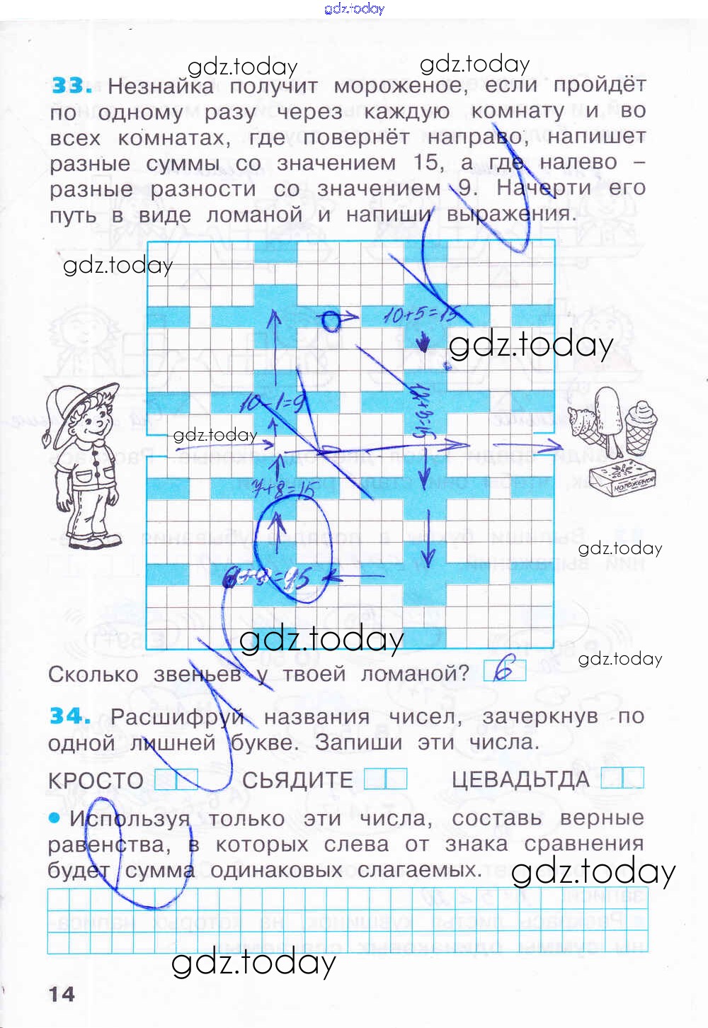 На страницах сайта gdz.today вы найдете учебный и вспомогательный материал, направленный на улучшения знаний школьной программы. ГДЗ - онлайн мир знаний Решение к тетради 1. Страницы 14 Рабочей тетради по Математике для 2 класса Бененсон, Итина Фёдоров 2015