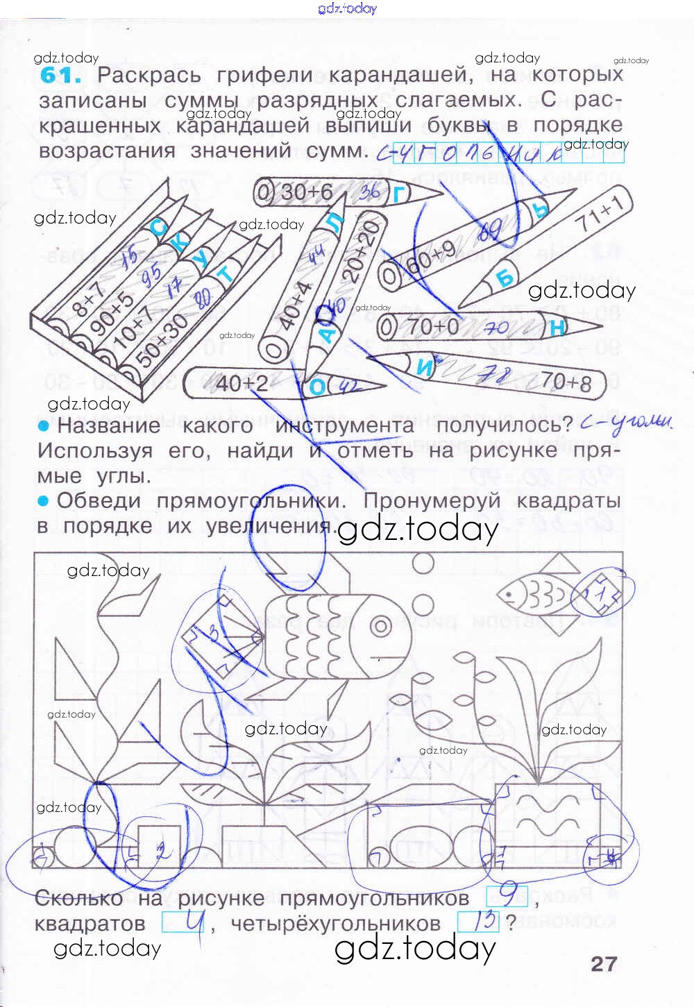 На страницах сайта gdz.today вы найдете учебный и вспомогательный материал, направленный на улучшения знаний школьной программы. ГДЗ - онлайн мир знаний Решение к тетради 1. Страницы 27 Рабочей тетради по Математике для 2 класса Бененсон, Итина Фёдоров 2015