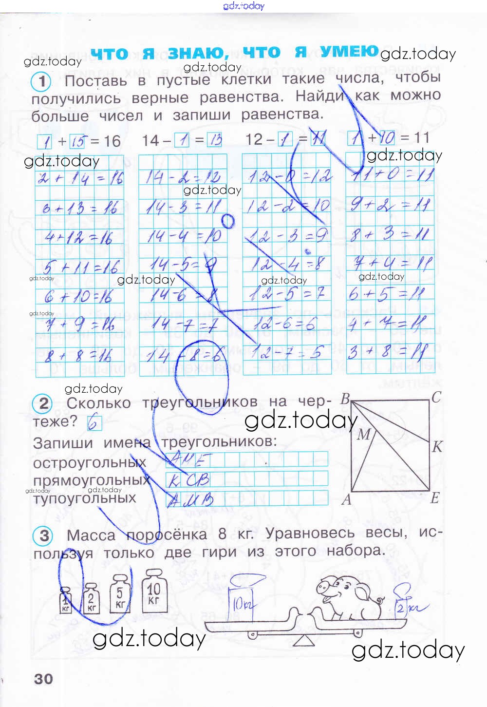 Ответы к Решение к тетради 1. Страницы 30 Рабочей тетради по Математике для 2 класса Бененсон, Итина Фёдоров 2015