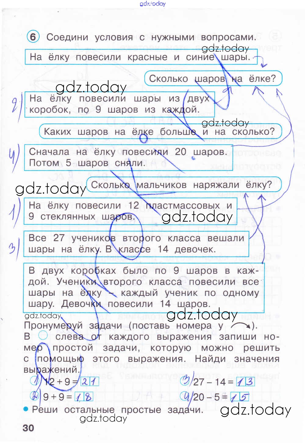 На страницах сайта gdz.today вы найдете учебный и вспомогательный материал, направленный на улучшения знаний школьной программы. ГДЗ - онлайн мир знаний Решение к тетради 2. Страницы 30 Рабочей тетради по Математике для 2 класса Бененсон, Итина Фёдоров 2015