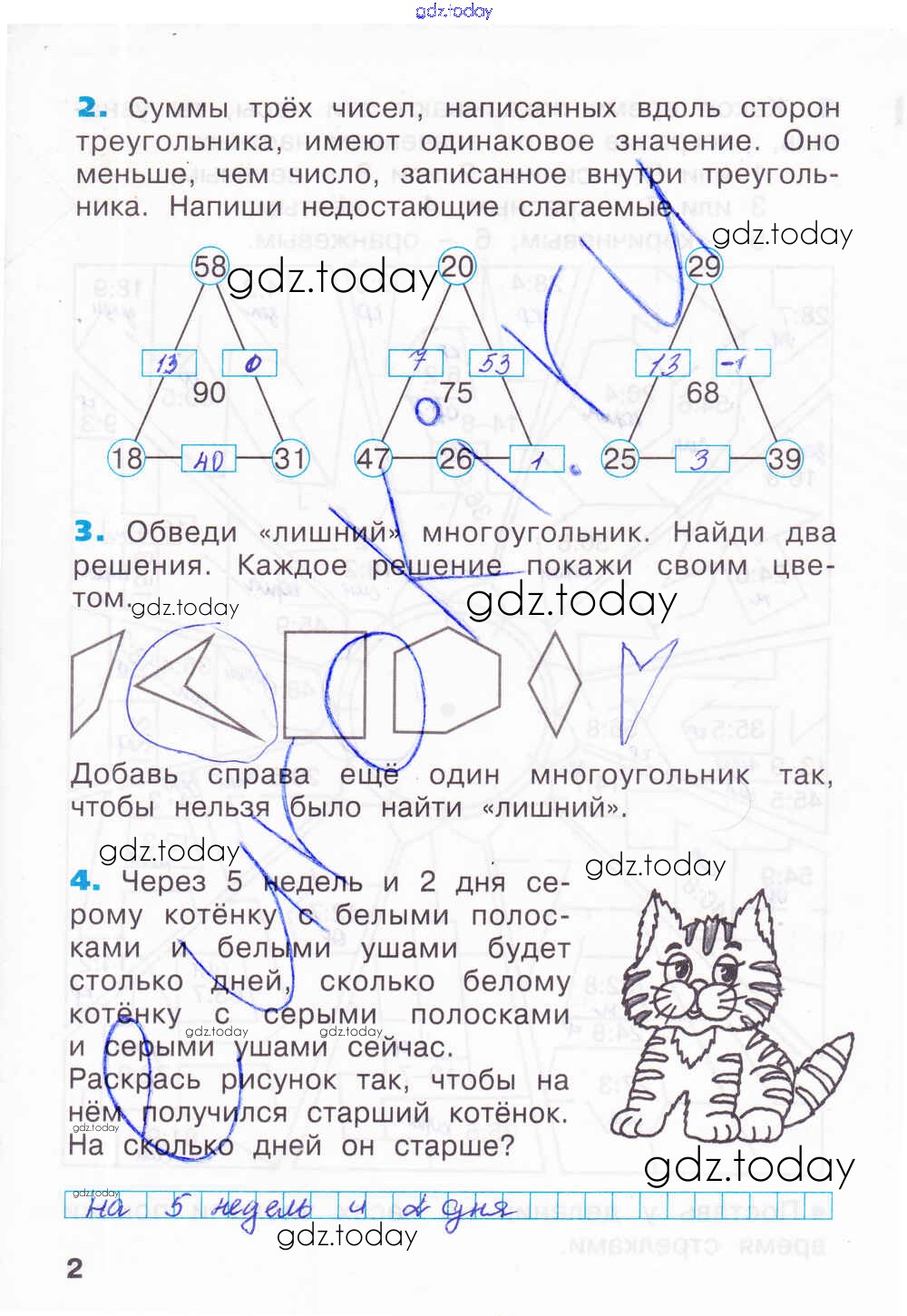 На страницах сайта gdz.today вы найдете учебный и вспомогательный материал, направленный на улучшения знаний школьной программы. ГДЗ - онлайн мир знаний Решение к тетради 4. Страницы 2 Рабочей тетради по Математике для 2 класса Бененсон, Итина Фёдоров 2015