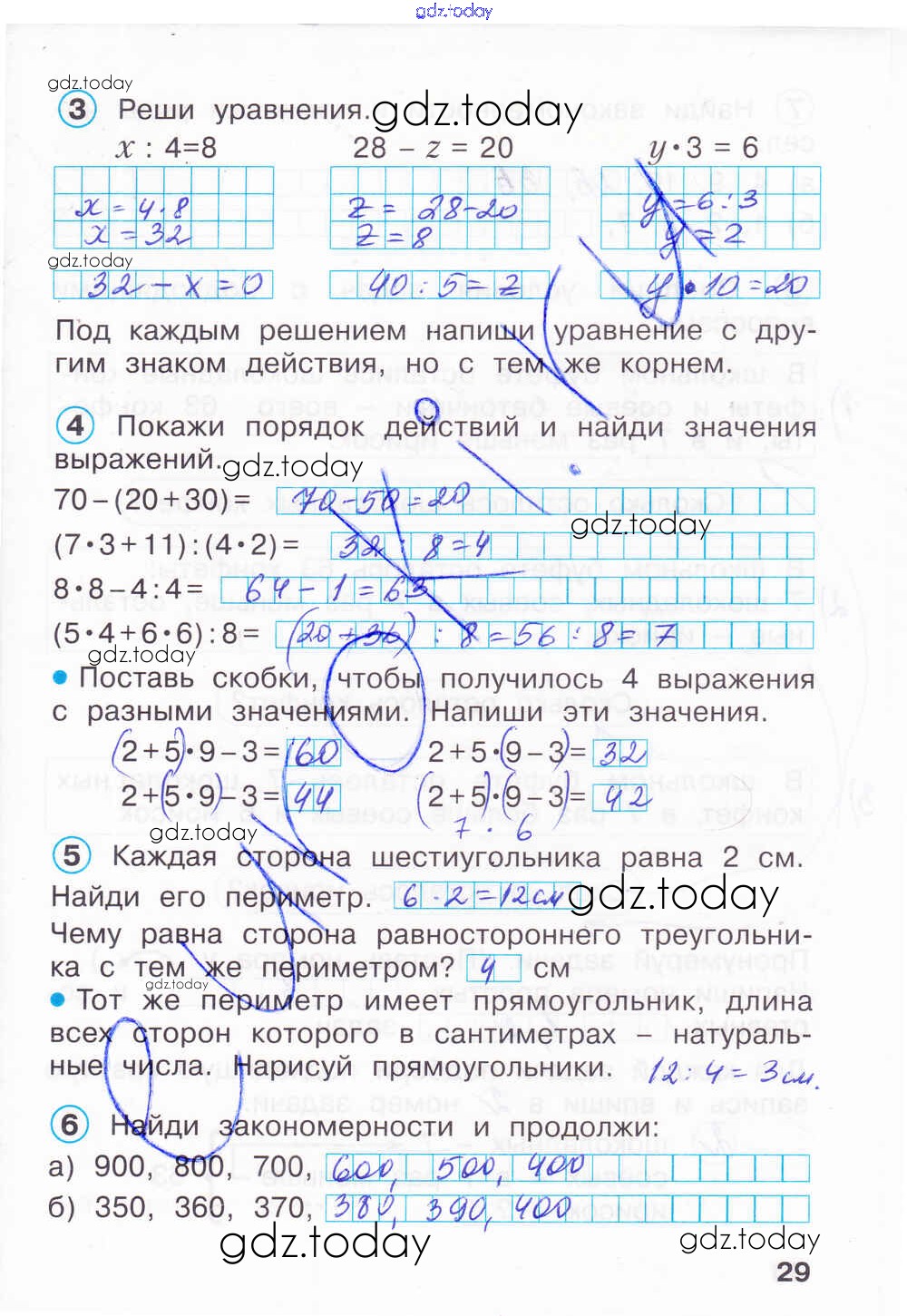 На страницах сайта gdz.today вы найдете учебный и вспомогательный материал, направленный на улучшения знаний школьной программы. ГДЗ - онлайн мир знаний Решение к тетради 4. Страницы 29 Рабочей тетради по Математике для 2 класса Бененсон, Итина Фёдоров 2015