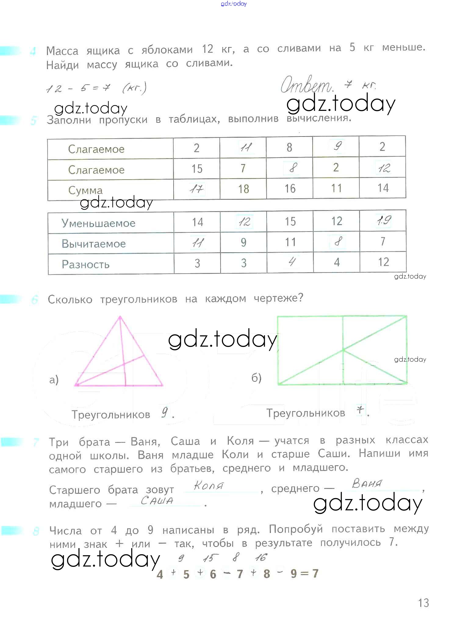 На страницах сайта gdz.today вы найдете учебный и вспомогательный материал, направленный на улучшения знаний школьной программы. ГДЗ - онлайн мир знаний Решение к части 1. Страницы 13 Рабочей тетради по Математике для 2 класса Дорофеев, Миракова Просвещение Перспектива 2015