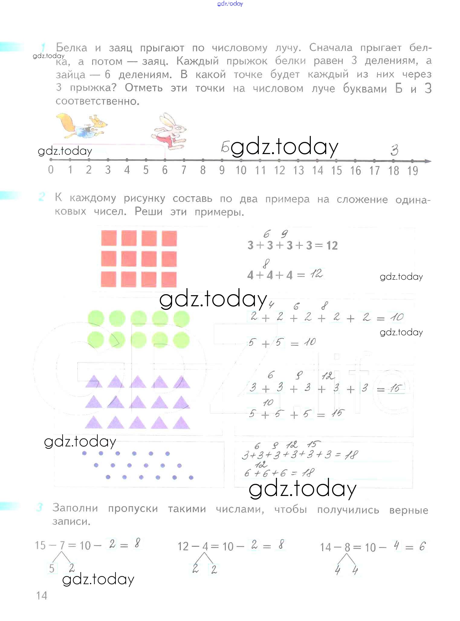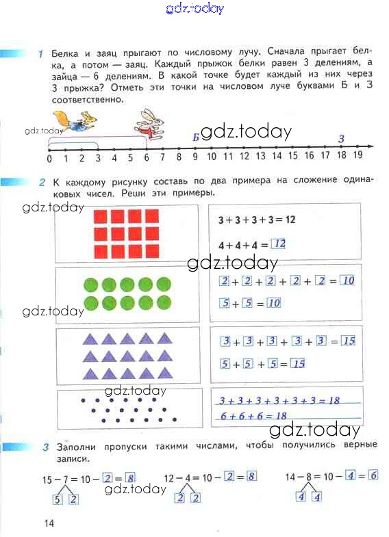 На страницах сайта gdz.today вы найдете учебный и вспомогательный материал, направленный на улучшения знаний школьной программы. ГДЗ - онлайн мир знаний Решение к части 1. Страницы 14 Рабочей тетради по Математике для 2 класса Дорофеев, Миракова Просвещение Перспектива 2015