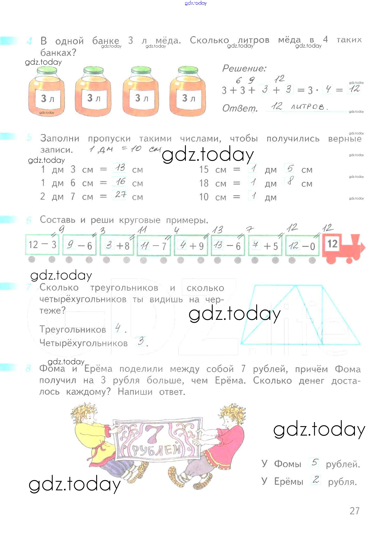 Ответы к Решение к части 1. Страницы 27 Рабочей тетради по Математике для 2 класса Дорофеев, Миракова Просвещение Перспектива 2015