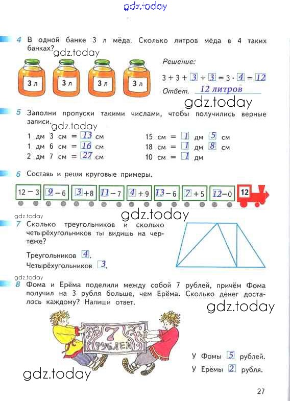На страницах сайта gdz.today вы найдете учебный и вспомогательный материал, направленный на улучшения знаний школьной программы. ГДЗ - онлайн мир знаний Решение к части 1. Страницы 27 Рабочей тетради по Математике для 2 класса Дорофеев, Миракова Просвещение Перспектива 2015