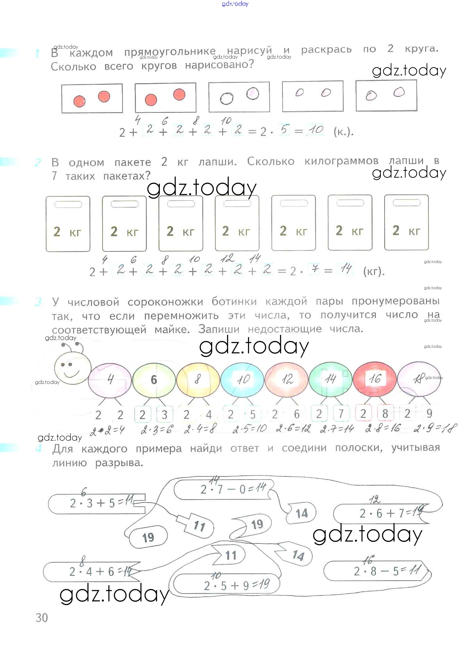 Ответы к Решение к части 1. Страницы 30 Рабочей тетради по Математике для 2 класса Дорофеев, Миракова Просвещение Перспектива 2015