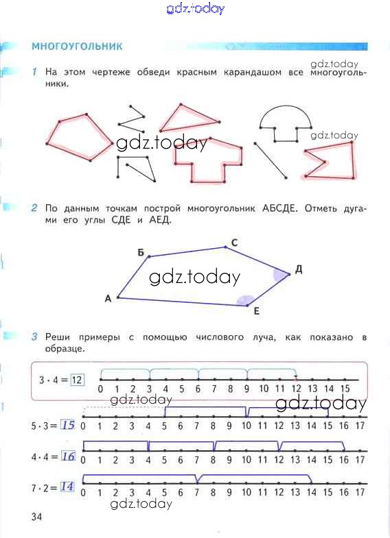 На страницах сайта gdz.today вы найдете учебный и вспомогательный материал, направленный на улучшения знаний школьной программы. ГДЗ - онлайн мир знаний Решение к части 1. Страницы 34 Рабочей тетради по Математике для 2 класса Дорофеев, Миракова Просвещение Перспектива 2015