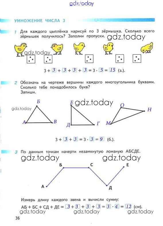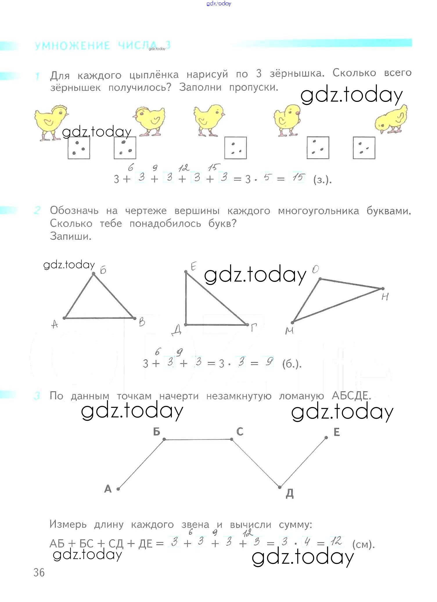 На страницах сайта gdz.today вы найдете учебный и вспомогательный материал, направленный на улучшения знаний школьной программы. ГДЗ - онлайн мир знаний Решение к части 1. Страницы 36 Рабочей тетради по Математике для 2 класса Дорофеев, Миракова Просвещение Перспектива 2015
