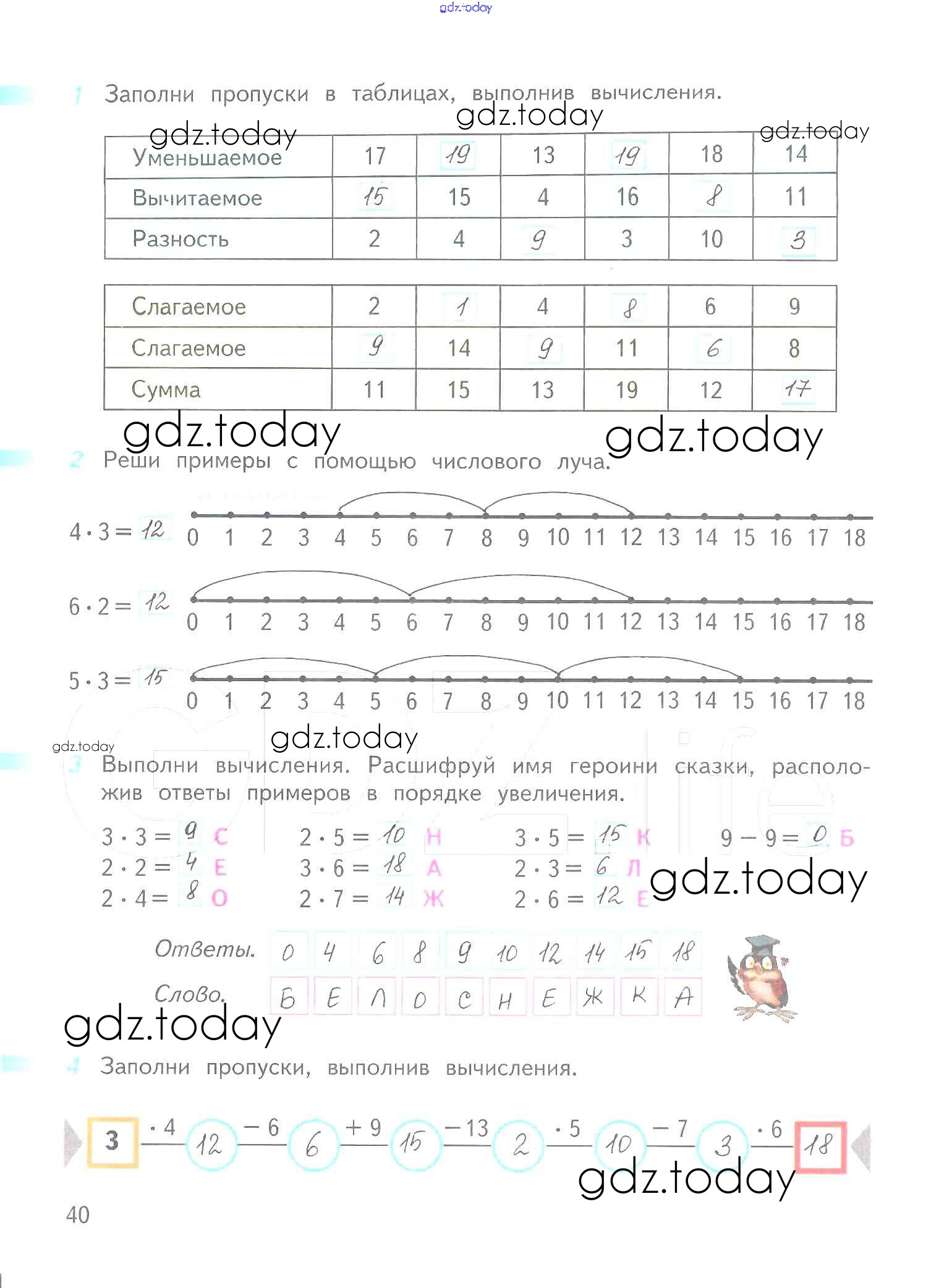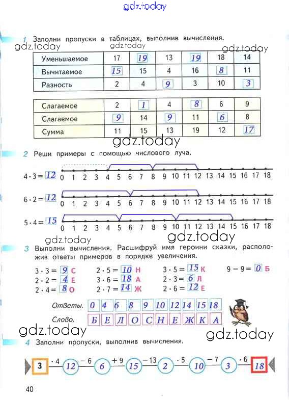 На страницах сайта gdz.today вы найдете учебный и вспомогательный материал, направленный на улучшения знаний школьной программы. ГДЗ - онлайн мир знаний Решение к части 1. Страницы 40 Рабочей тетради по Математике для 2 класса Дорофеев, Миракова Просвещение Перспектива 2015