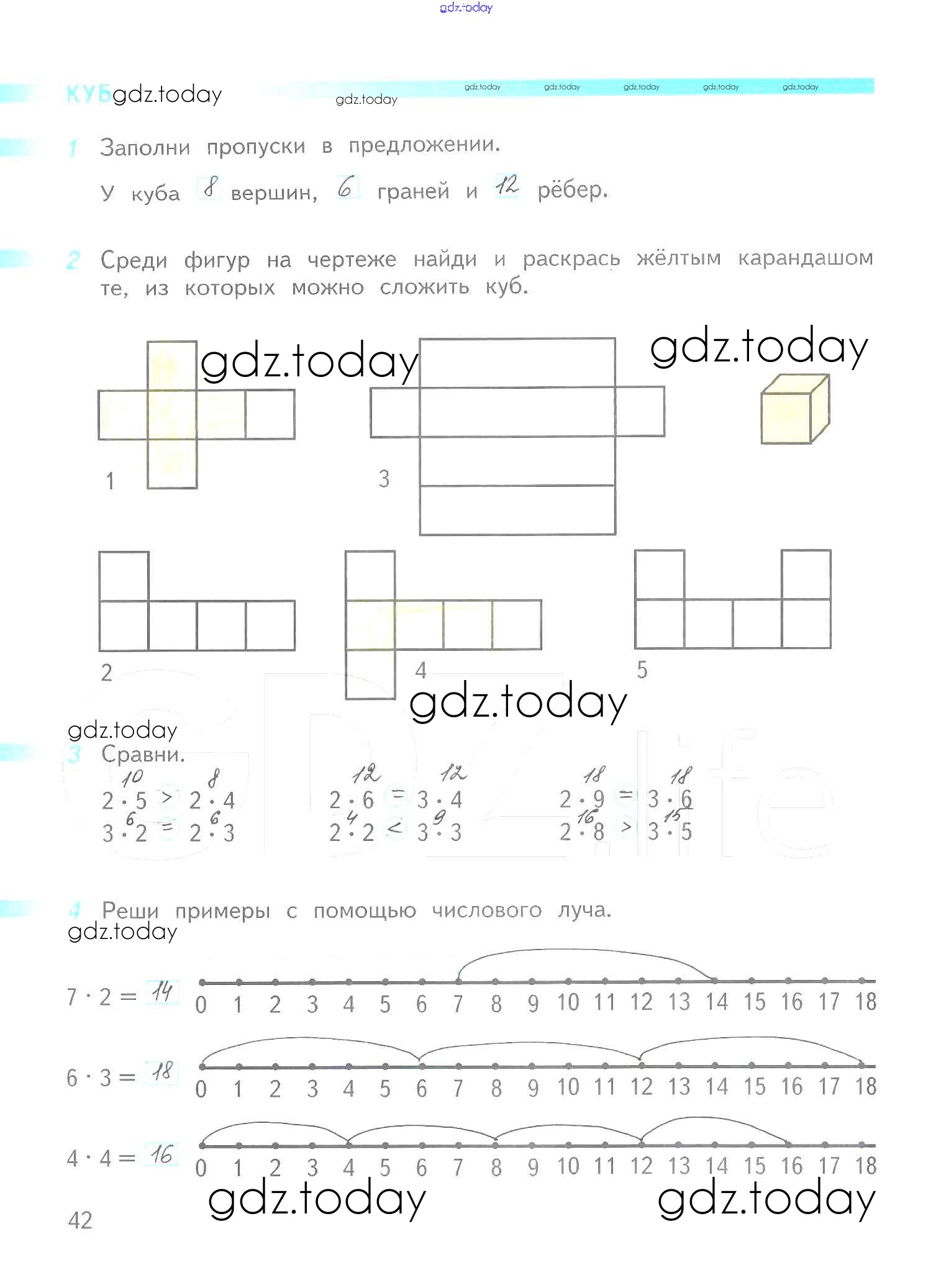 На страницах сайта gdz.today вы найдете учебный и вспомогательный материал, направленный на улучшения знаний школьной программы. ГДЗ - онлайн мир знаний Решение к части 1. Страницы 42 Рабочей тетради по Математике для 2 класса Дорофеев, Миракова Просвещение Перспектива 2015