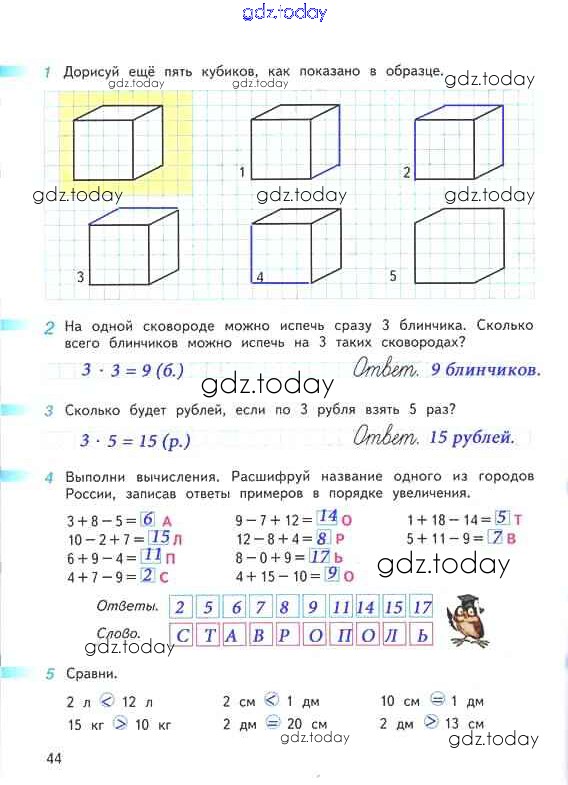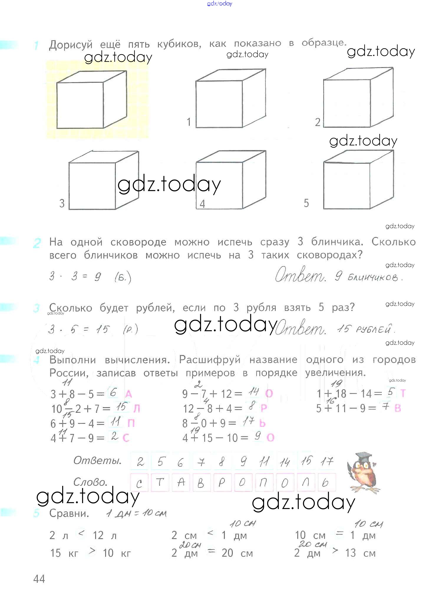 На страницах сайта gdz.today вы найдете учебный и вспомогательный материал, направленный на улучшения знаний школьной программы. ГДЗ - онлайн мир знаний Решение к части 1. Страницы 44 Рабочей тетради по Математике для 2 класса Дорофеев, Миракова Просвещение Перспектива 2015