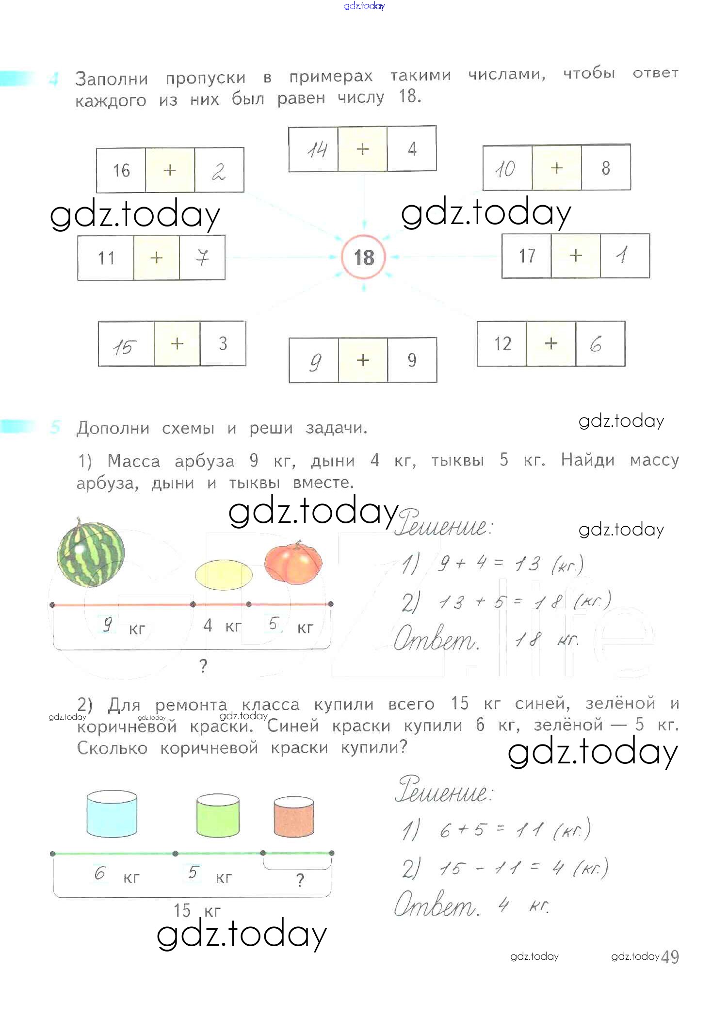 Ответы к Решение к части 1. Страницы 49 Рабочей тетради по Математике для 2 класса Дорофеев, Миракова Просвещение Перспектива 2015
