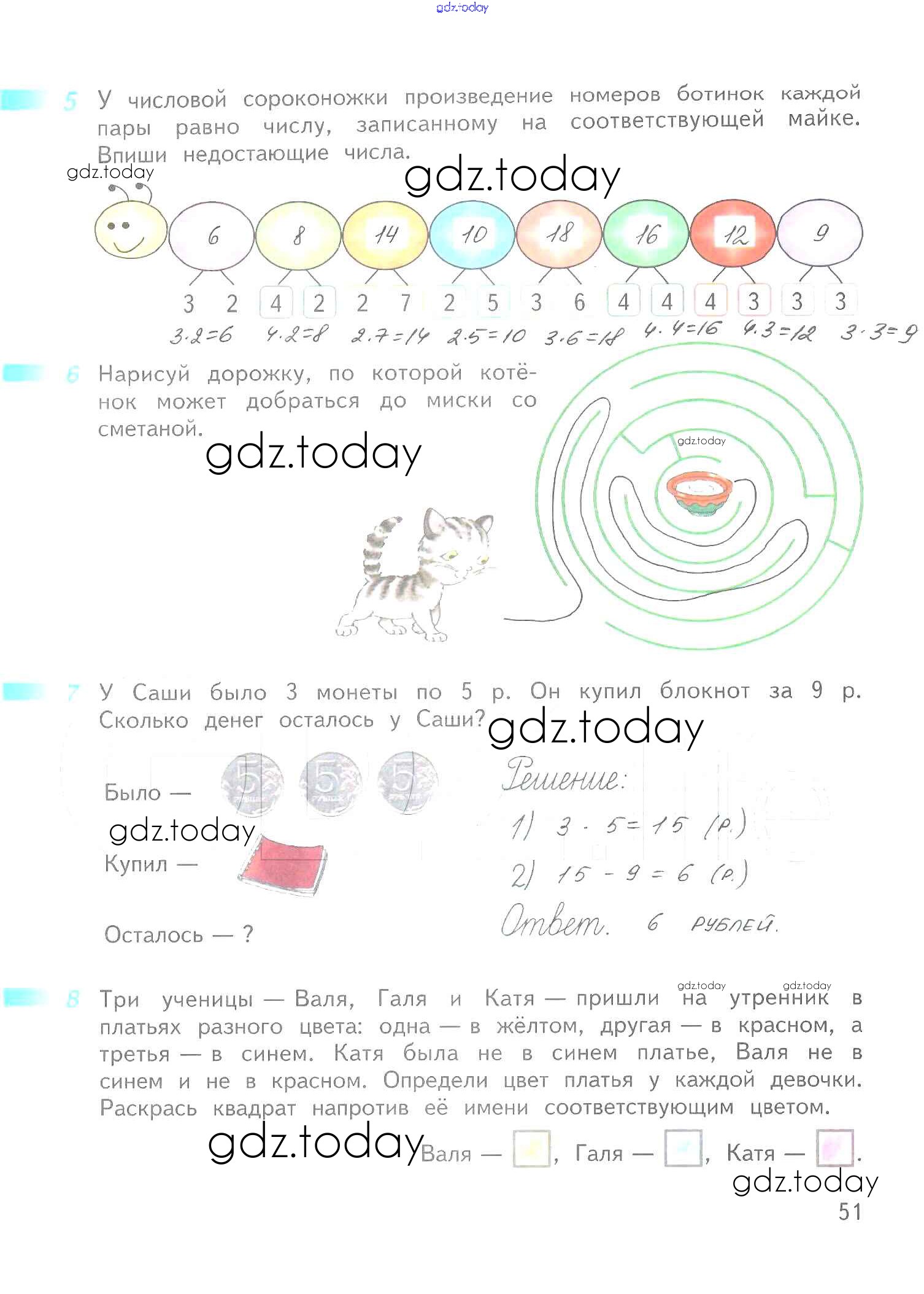 На страницах сайта gdz.today вы найдете учебный и вспомогательный материал, направленный на улучшения знаний школьной программы. ГДЗ - онлайн мир знаний Решение к части 1. Страницы 51 Рабочей тетради по Математике для 2 класса Дорофеев, Миракова Просвещение Перспектива 2015