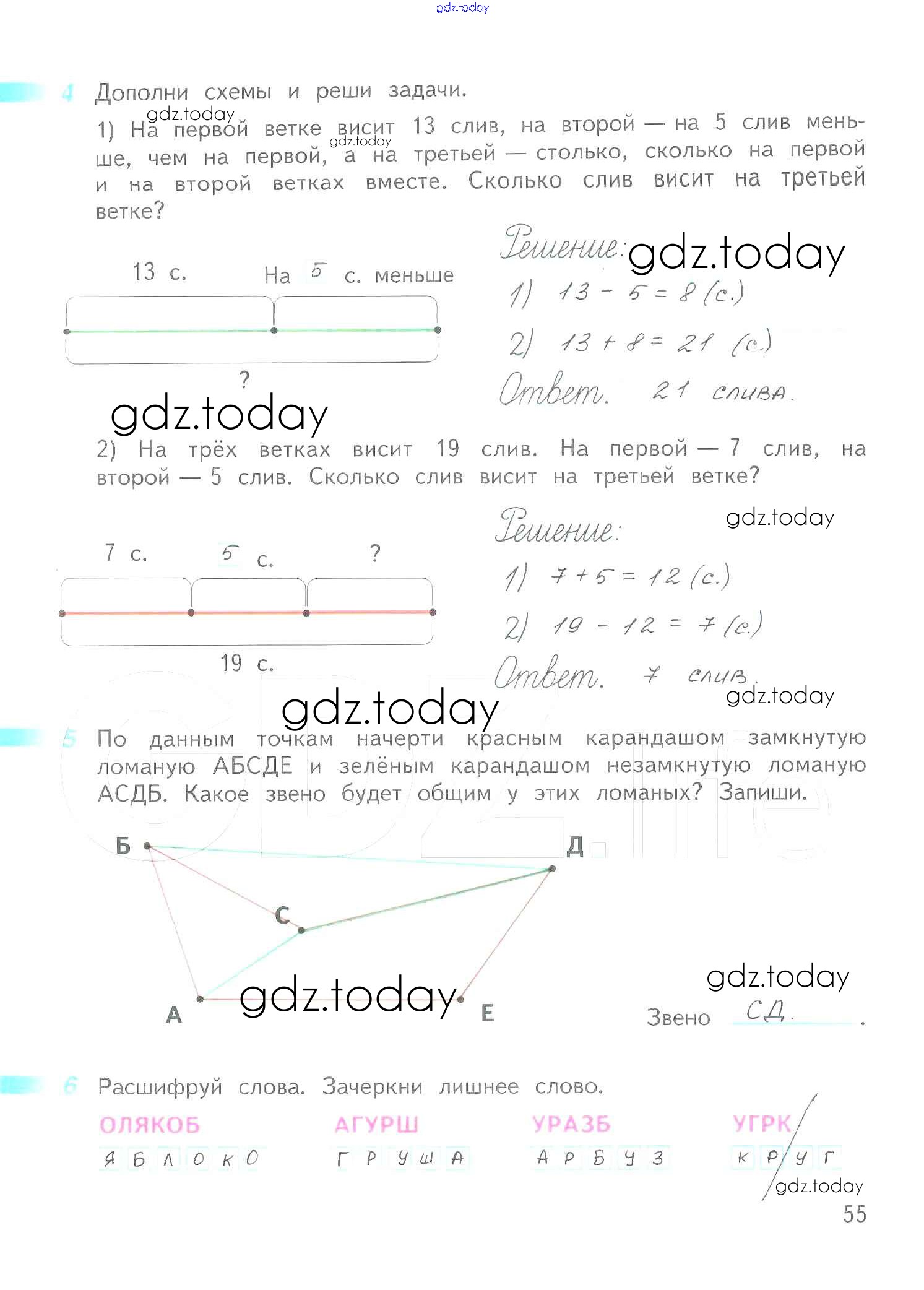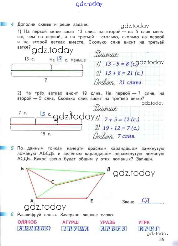 Ответы к Решение к части 1. Страницы 55 Рабочей тетради по Математике для 2 класса Дорофеев, Миракова Просвещение Перспектива 2015