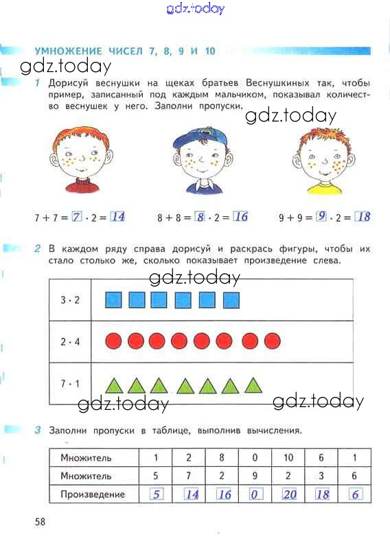 На страницах сайта gdz.today вы найдете учебный и вспомогательный материал, направленный на улучшения знаний школьной программы. ГДЗ - онлайн мир знаний Решение к части 1. Страницы 58 Рабочей тетради по Математике для 2 класса Дорофеев, Миракова Просвещение Перспектива 2015