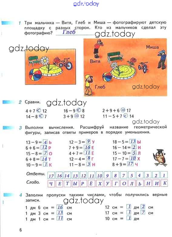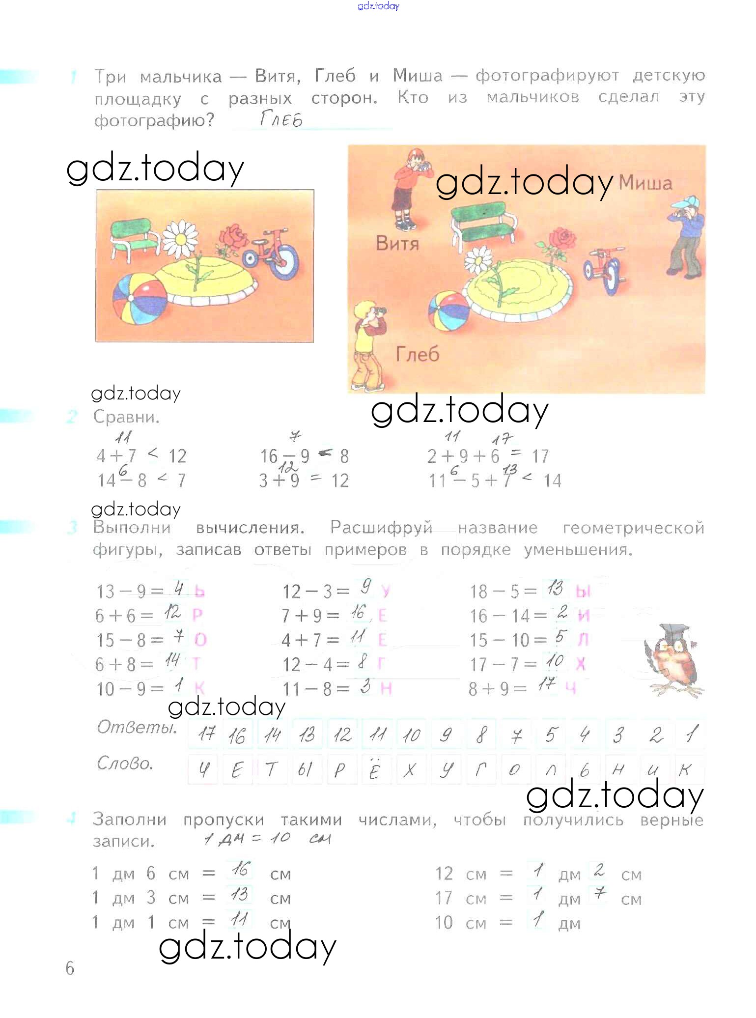 На страницах сайта gdz.today вы найдете учебный и вспомогательный материал, направленный на улучшения знаний школьной программы. ГДЗ - онлайн мир знаний Решение к части 1. Страницы 6 Рабочей тетради по Математике для 2 класса Дорофеев, Миракова Просвещение Перспектива 2015