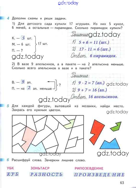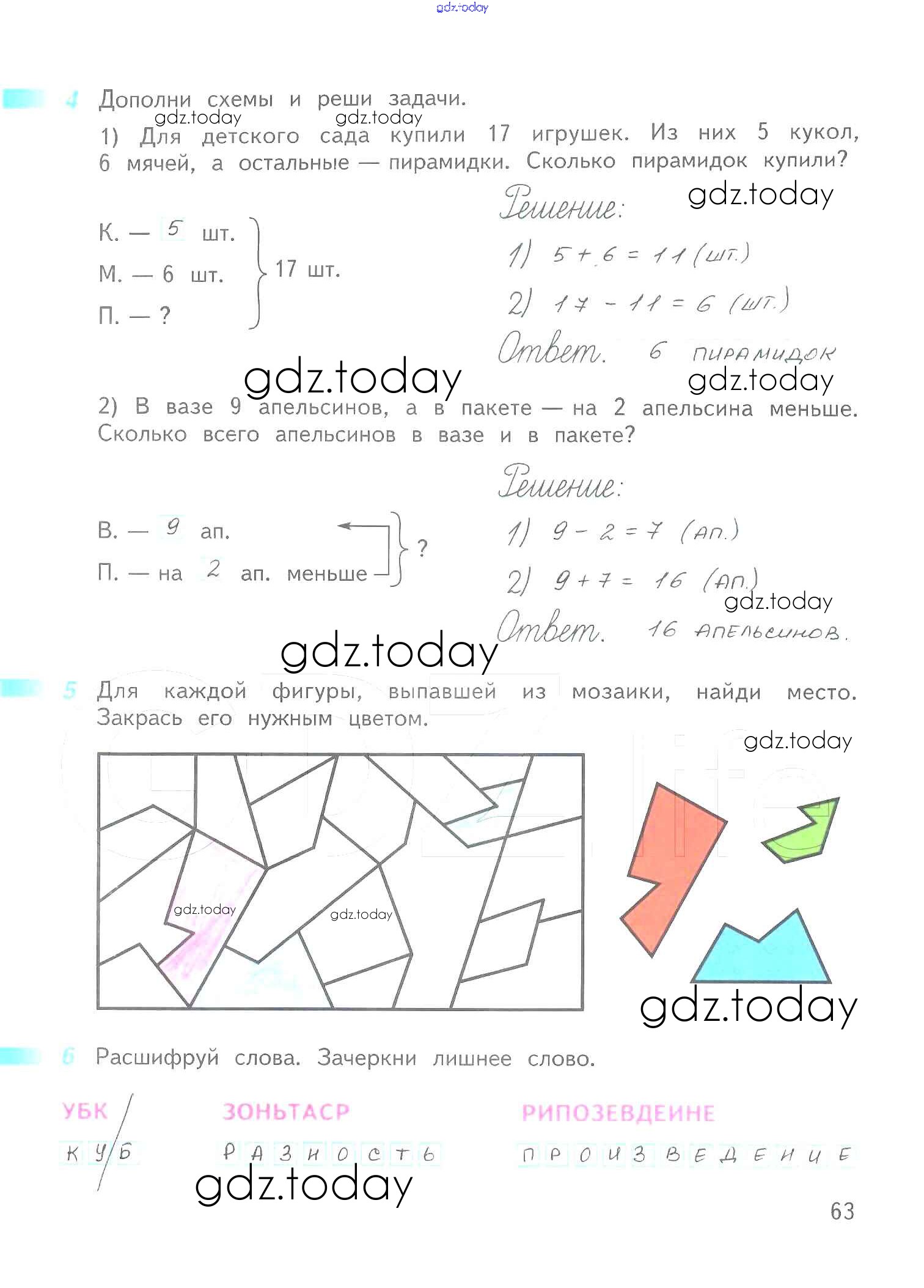 Ответы к Решение к части 1. Страницы 63 Рабочей тетради по Математике для 2 класса Дорофеев, Миракова Просвещение Перспектива 2015
