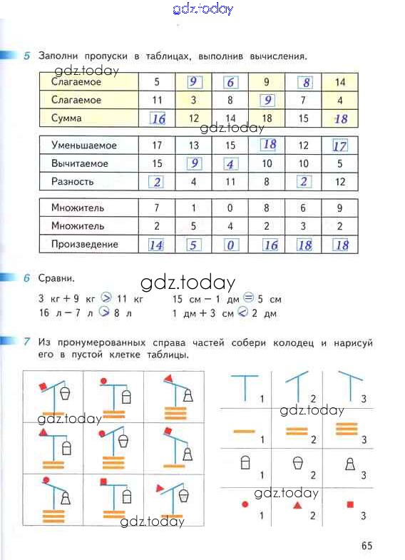 На страницах сайта gdz.today вы найдете учебный и вспомогательный материал, направленный на улучшения знаний школьной программы. ГДЗ - онлайн мир знаний Решение к части 1. Страницы 65 Рабочей тетради по Математике для 2 класса Дорофеев, Миракова Просвещение Перспектива 2015