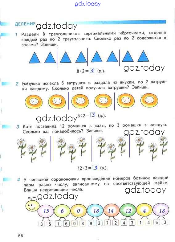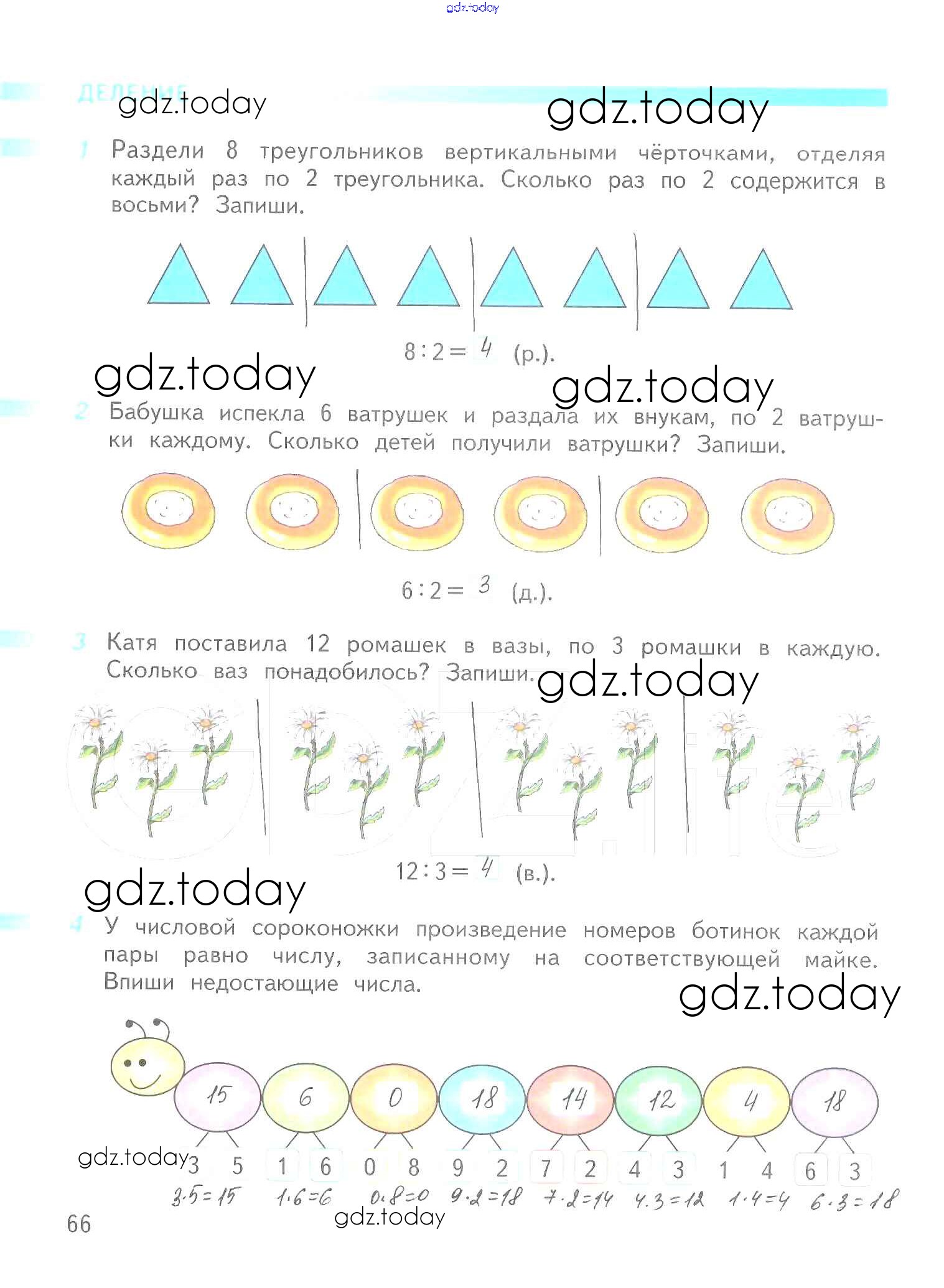 На страницах сайта gdz.today вы найдете учебный и вспомогательный материал, направленный на улучшения знаний школьной программы. ГДЗ - онлайн мир знаний Решение к части 1. Страницы 66 Рабочей тетради по Математике для 2 класса Дорофеев, Миракова Просвещение Перспектива 2015